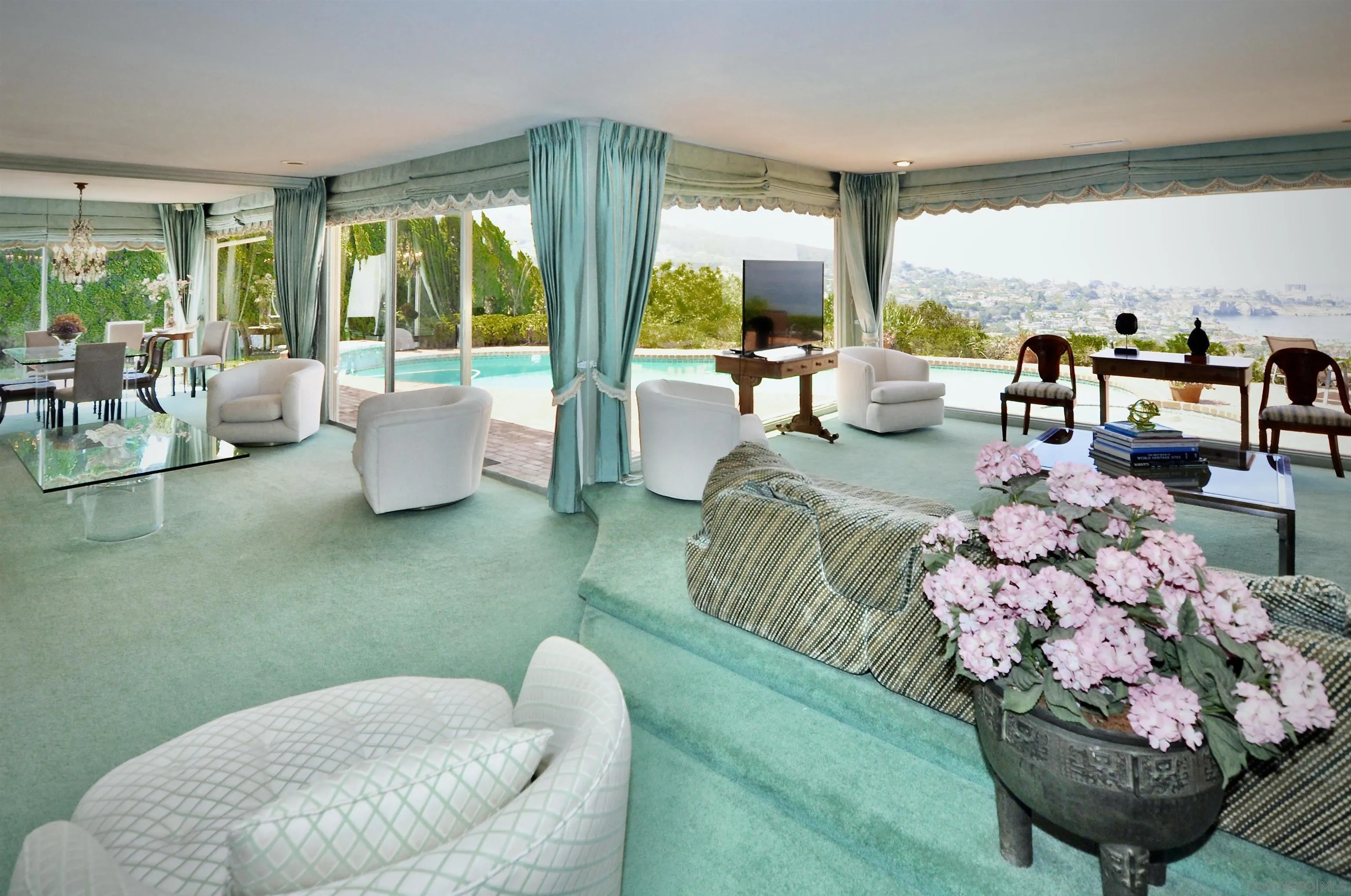 La Jolla Shores Mid-Term Rental Available! This single level homes boasts 180 degree ocean views of La Jolla Shores. Take in the breath-taking scenery from spacious living room, private patio, in ground pool & spa, around the fireplace, or from the outdoor dining area. Just minutes away from the coveted La Jolla beaches, local restaurants and boutique shops. Floor to ceiling windows bring the beautiful La Jolla coastline to you. Appreciate the stunning views from the open living space and spacious primary bedroom. This home offers 4 bedrooms and 4 full baths. There is a separate entrance to 3 of the 4 bedrooms offering flexible sleeping arrangments. Home is fully furnished and a perfect layout for families and friends. Rates vary based on season. Available now.