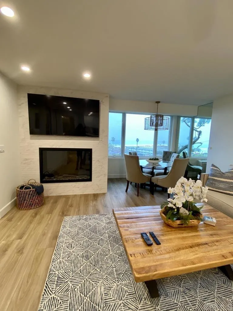The Beach is calling. All in, the Best vacation spot in Del Mar. Beautiful and spacious Del Mar Beach Colony condominium offers 1 bedroom ensuite with optional bedroom, 2 full baths, full whitewater ocean and coastline views. As a guest you have use of the L’Auberge Del Mar Resort’s heated. pool, jacuzzi, fitness center, and 2 lighted tennis courts as available. It’s a stone’s throw to the beach, parks and village. Interior features: Travertine Flooring, granite counters, fireplace, view balcony, A/C, study area. You’re close to golf courses, hiking trails, the Fairgrounds and many vacation attractions. Stay in Del Mar where the turf meets the surf. Rates vary with the season. Cleaning fee, Security Deposit $2500 + electric. One month minimum stay. CONSTRUCTION Note: Exterior building maintenance is scheduled from mid-August thru mid-January. As a result, this rental is being offered with an unbelievable rent concession during this timemaking it an exceptional value for such a prime location. See construction schedule attached.