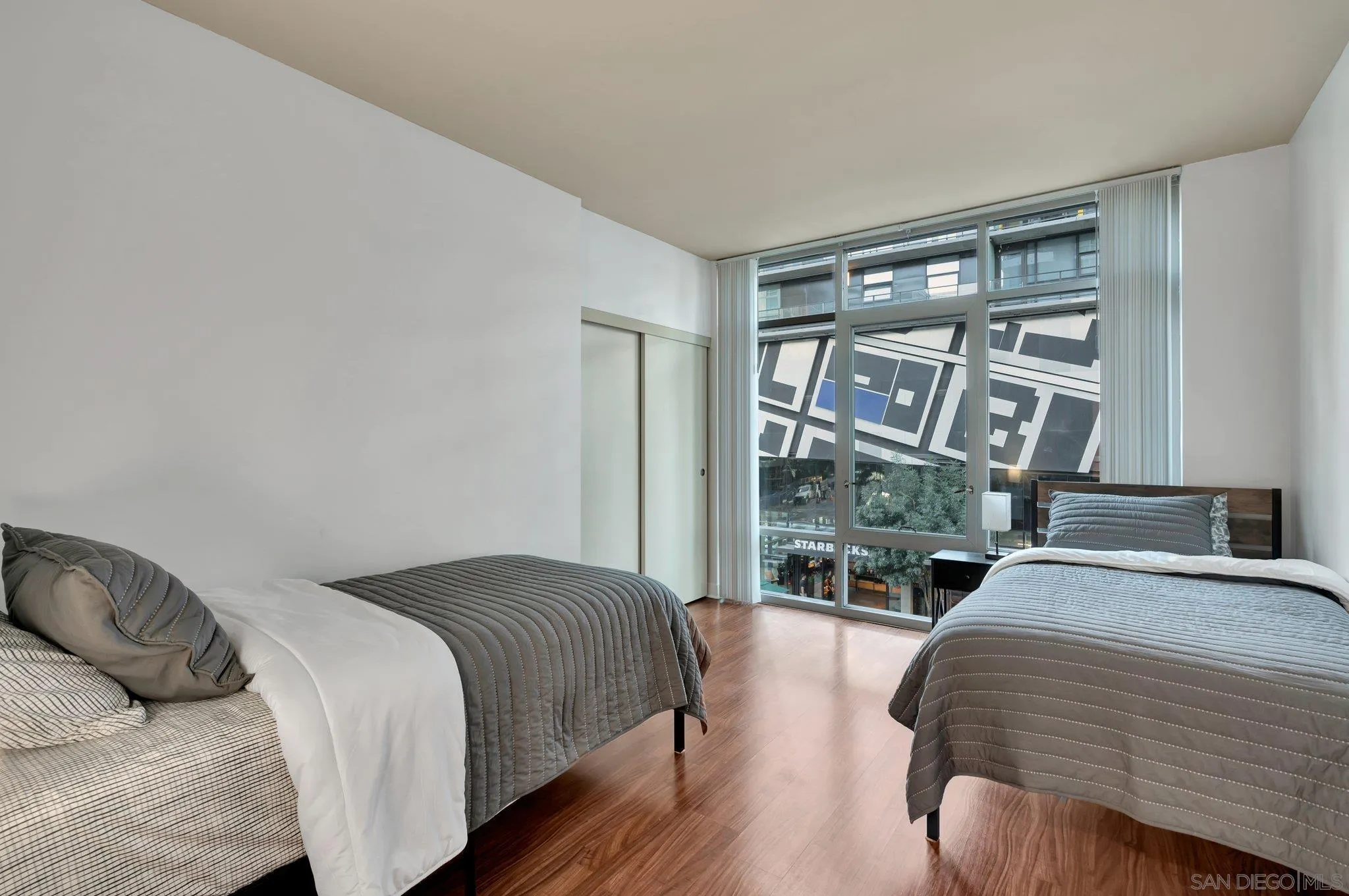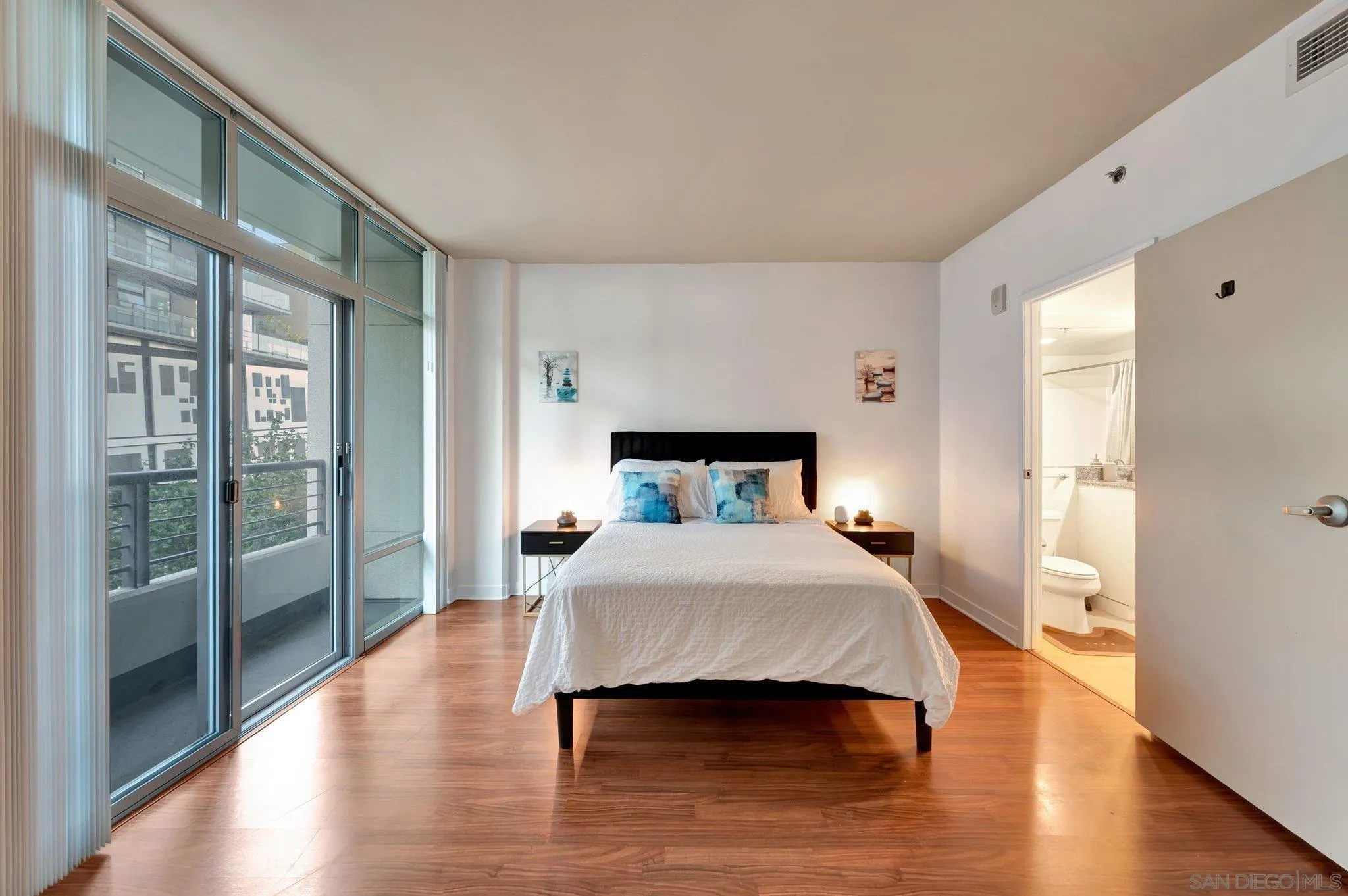 RARELY AVAILABLE FURNISHED 2 bed 2 bath with patio & parking in the heart of Little Italy…WALKING DISTANCE to EVERYTHING!!! Discover the perfect blend of comfort and city living in this stunning condo. The spacious, open living area is adorned with hardwood flooring and features floor-to-ceiling windows, flooding the space with natural light and offering spectacular city views. The primary bedroom is a private retreat, complete with a walk-in closet, an ensuite bathroom featuring a newly finished shower/tub, and direct access to the patio—perfect for soaking in the beautiful San Diego weather. The second bedroom is equally impressive, with its bright ambiance and versatility, making it ideal for a home office or guest room. The kitchen boasts ample cabinetry, seamlessly connecting to the dining area, which is perfect for hosting and entertaining. Step out onto the patio and envision al fresco evenings, complemented by takeout from any of the neighborhood’s celebrated eateries. Located in the sought-after Acqua Vista complex, residents enjoy resort-style amenities, including a pool, hot tub, BBQ area, fitness center, clubhouse, complimentary valet, and 24/7 security with lobby attendants. Additional parking and electric vehicle charging stations are available for rent through the HOA. Situated in the heart of Little Italy, this condo offers unmatched access to trendy restaurants, boutique shops, the harbor, and the famous Little Italy Farmers Market. Don’t miss this opportunity to experience vibrant urban living at its finest! Lease to start within 10 days.