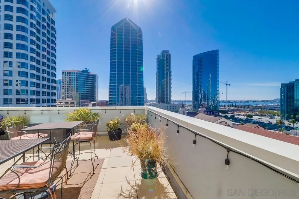 Welcome home to this south-facing, impressive TURN-KEY FURNISHED residence, in the highly sought-after community of Treo, located in the prime Columbia/Little Italy village. Enjoy year-round indoor/outdoor living in Treo, a 22-story, highrise, with resort-style amenities, 24-hour concierge, and security. This one-of-a-kind FULLY FURNISHED UNIT with HUGE 650 sq ft PRIVATE PATIO w BAY & CITY VIEWS. You will appreciate the light, bright & airy vibe throughout this spacious 1-story, 2 bed/2 bath, 1107 sq ft home with 1 parking and 1 storage unit. A full-size kitchen with granite counters and stainless appliances provides the perfect space to whip up culinary delights and entertain guests. This home also features a stackable washer/dryer in-unit, a/c, and fireplace. Building amenities include a pool, jacuzzi, gym, BBQ, bike storage, and community center. BEST LOCATION DOWNTOWN, WALKING DISTANCE TO EVERYTHING: the wildly popular Little Italy Farmer’s Market, Waterfront Park, Seaport Village, Balboa & Petco Parks, Gaslamp Quarter, fantastic dining, cafes, bars, boutiques, and entertainment. Close proximity to the train, trolley, airport, beaches & more. Don’t miss the opportunity to call this residence home – schedule your tour today and experience the true magic of the Columbia/Little Italy area living! We welcome all Dep’t of Defense (DOD). We’d love to work with you, so if you’re looking for something different, please inquire about Downtown Condo Guys other listings.
