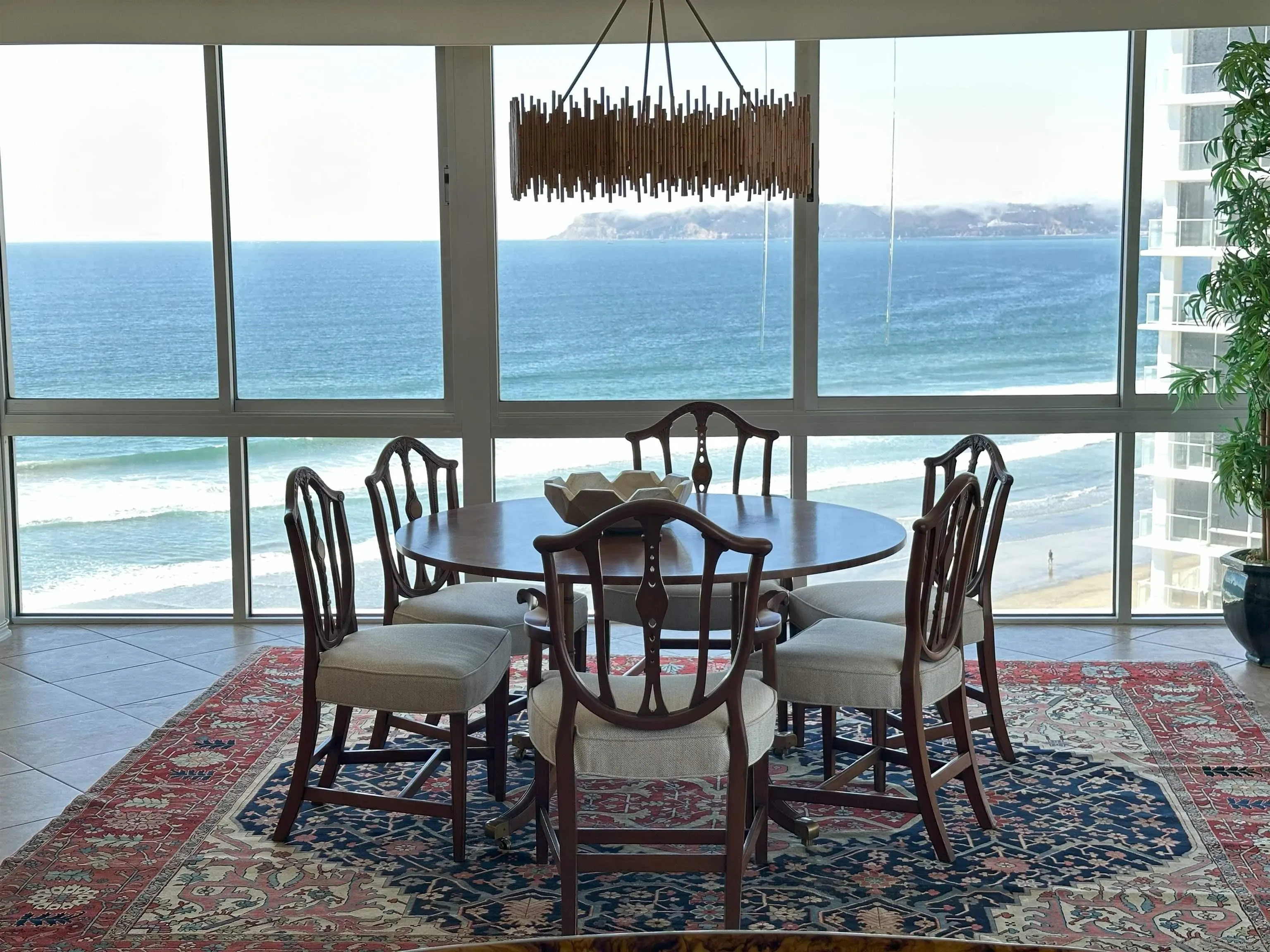 Enjoy the best of Coronado Beach and San Diego Bay from the gem of Coronado Shores at La Perla Tower. Spacious and beautifully remodeled 2 BR/2 BA corner unit boasts gorgeous ocean, skyline and bay views. Luxurious King bed in the primary bedroom, 2 plush Queen beds in guest room. Updated bathrooms. Automated blinds. Beachy tile floors, kitchen with high end appliances including Miele dishwasher, Thermador oven/range and Kitchen Aid refrigerator. Tandem secure parking spots in garage. Quick walk to historic Hotel Del Coronado, shops and restaurants. Enjoy pools, tennis courts and gym.