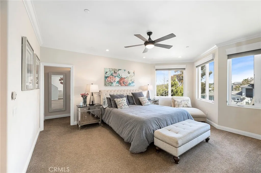 Experience the beach lifestyle in the charming Village of Carlsbad! Stroll to various shops, restaurants, amenities, the train station, and the beautiful sandy beach. Enjoy sunsets, surfing, biking, and strolling along the boardwalk with everything within your reach. If you prefer to stay in, there’s a BBQ patio adjacent to the family room and a huge (over 700 sq. ft.) rooftop PRIVATE DECK. This elegant townhome comes fully furnished so all you need is your clothes and your toothbrush. In addition, the home features a spacious layout with a two-car attached garage, an open-plan kitchen, dining area, family room, and a bedroom and full bathroom on the main floor. The other three bedrooms are on the next floor, which includes a luxurious primary bedroom, adorned with stylish deco furniture and a well-appointed bathroom. Just down the hall are two additional bedrooms, and a bathroom with a double-sink vanity. An indoor staircase leads to the expansive, private rooftop deck, complete with views, a firepit, and a BBQ. This family home is also a licensed short-term rental in the City of Carlsbad, with monthly rates that vary according to the season and length of stay. PLEASE NOTE: THE MONTHLY RENT POSTED DOES NOT APPLY TO SUMMER MONTHS. Listing agent is also owner and call for availability on property.