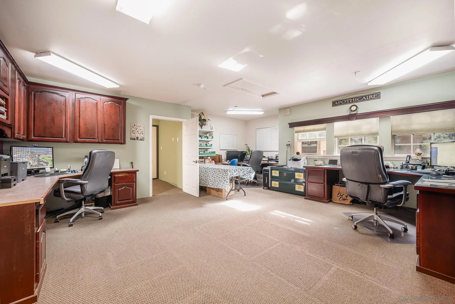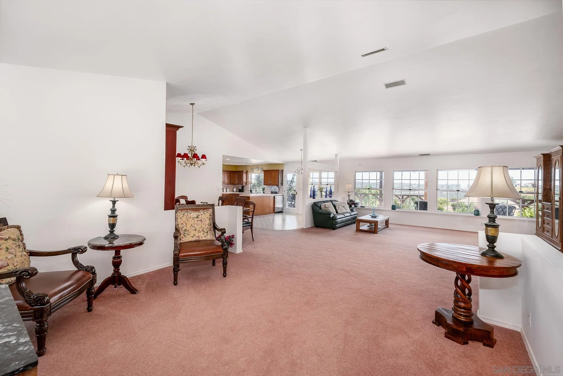 Welcome to this exceptional 3-bedroom, 2-bathroom estate boasting 2,659 SqFt of luxurious living space and 2.57 acres of usable land. This open-concept home is filled with natural light and features soaring 12-foot cathedral ceilings in the great room, which is perfect for entertaining with two sitting areas and a dining area. The kitchen is a chef’s delight, equipped with a gas burner stove, stainless steel appliances, trash compactor, and a reverse osmosis drinking water system. Enjoy meals in the eat-in kitchen area or step out onto the exterior deck through the convenient kitchen door. The primary ensuite is a true retreat, featuring a dual sink vanity, spacious walk-in closet, walk-in shower, privacy toilet room, large linen closet, and a Nutone built-in ironing center with an automatic timer. A private entrance leads to the expansive 60-foot deck, perfect for morning coffee or evening relaxation. The 2-car garage has been thoughtfully converted into a 525 sq ft finished office with a private entrance. This versatile space includes 2 built-in cherry wood desks and cabinets, 5 phone lines, a coffee bar, and more, making it ideal for a home office, art studio, recreation room, exercise room, optional bedroom, or granny flat. The professionally designed gardens, developed by award-winning Landscape Locators Unlimited, create a private retreat. The 2.57-acre estate offers unobstructed 180-degree views to the south overlooking the Santa Margarita River preserve and to the north toward the historic Rock Mountain.