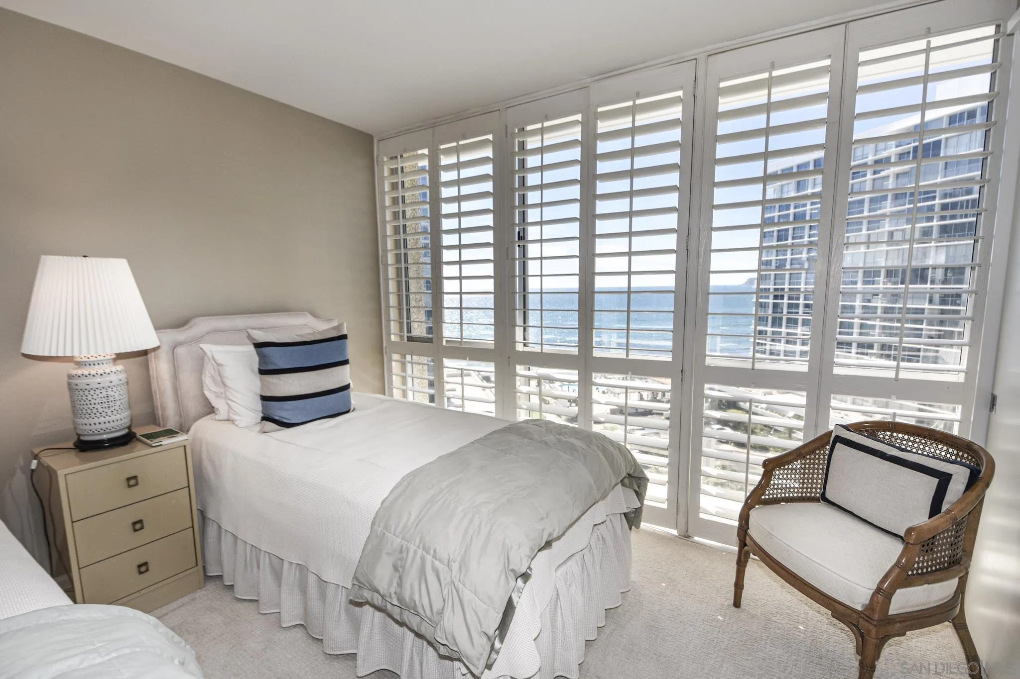 Spacious corner condo in La Princesa tower featuring two bedrooms, three bathrooms plus a den. Expansive views of the ocean, Point Loma and the city. Enjoy resort-style living with access to tennis/pickle ball courts, oceanfront pools, gym, BBQ area, and Beach Club. This condo is conveniently located near the beach, restaurants, and shops, making it easy to enjoy all that Coronado has to offer. Call pricing , rates vary depending on season and length of stay.