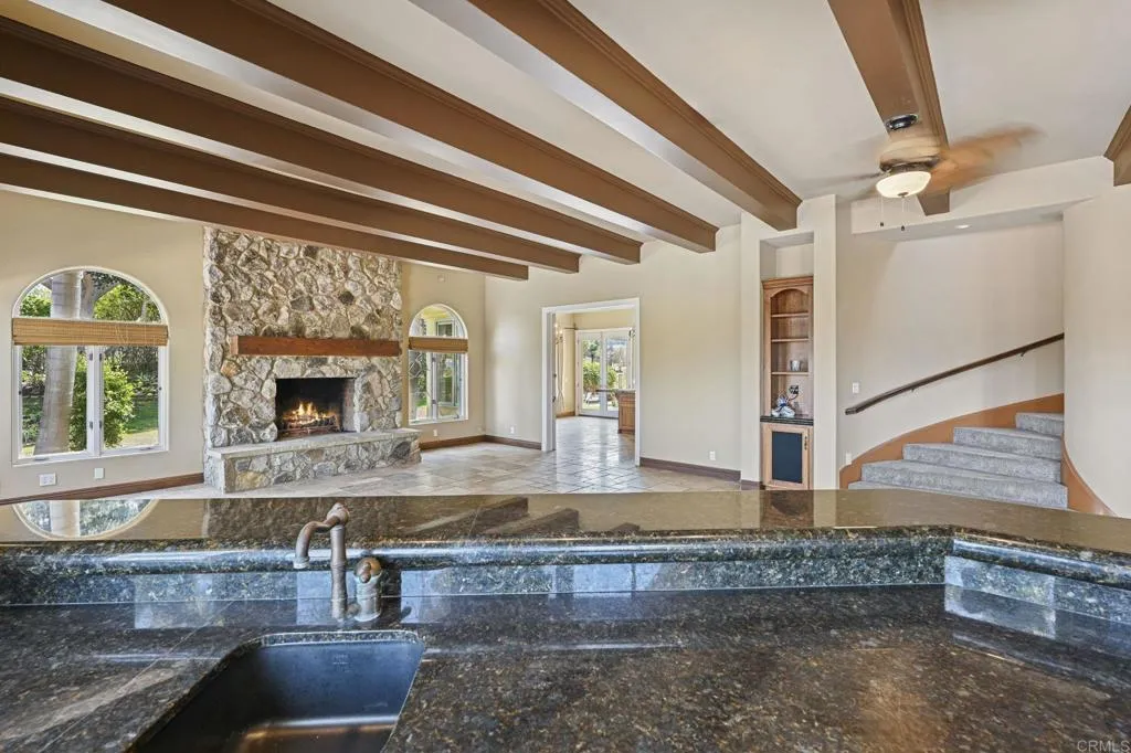 Discover this spacious 6,800 sq. ft., 5-bedroom, 6-bath gated masterpiece set on over 3 acres of pristine land. Perched atop a hill in South Pointe Farms, this residence offers breathtaking panoramic views from every vantage point. The tropical landscaping creates a private, park-like oasis, framing a sparkling pool and spa, expansive paver patios, and inviting outdoor spaces perfect for entertaining. While the mostly single-level layout includes two bedroom suites and guest quarters on the main level. Upstairs, find two additional bedrooms and a versatile bonus room (optional bedroom). A rare blend of privacy and sweeping vistas in the heart of Rancho Santa Fe.