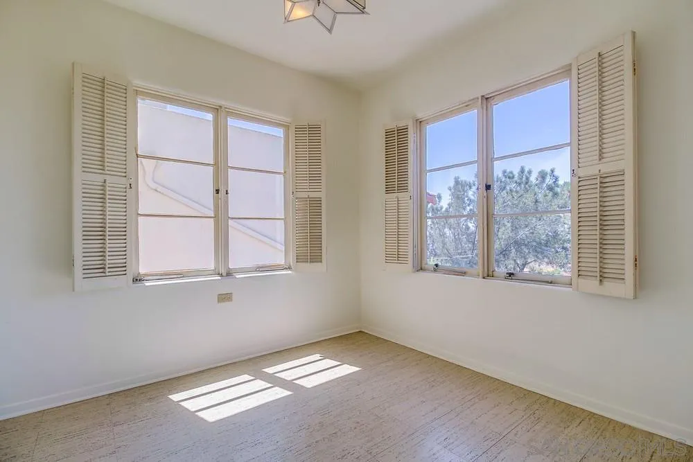 Step into the timeless charm of 1929 with this classic Spanish Colonial Revival residence, nestled in a secluded enclave of Bankers Hill. Brimming with character, the home showcases authentic stucco exteriors, red clay tile roof, original wrought iron details, and gracefully arched windows and doors. Inside, you’ll find exposed, hand-painted wood beams, artisan tilework, and historic elements that reflect the home’s architectural heritage. The floor plan features generously sized rooms, private balconies, and partial bay views that bring in natural light and coastal breezes. The terraced backyard is shaded by a canopy of mature, fruit-bearing trees, including two varieties of avocado, an assortment of citrus, plum, fig, and more.