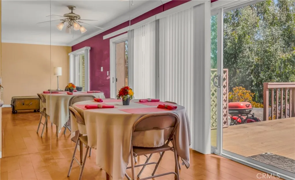 Well established and maintained Strawberry Hills HOA in the heart of La Mesa….convenient access to US Hwy (8) east/west around the corner US Hwy (15) north/south….Lake Murray regional park hiking, biking, running, fishing and more with regional shopping minutes away…..Set on the hill a 3bdrm 2.5 bath….a splash of color a contemporary vibe, wood flooring in living room-dining area and kitchen, recessed lighting, 1/2 bath on first floor, all bedrooms up…primary bedroom with large window and a nice view perspective outside catching morning sun, ceiling fan, walk-in closet, primary bath dual vanities, wall to wall mirror. separate custom walk-in shower….roomy second bedroom, mirrored closet door….3rd bedroom perfect for office….Kitchen with newer refrigerator included, microwave, granite counters, stainless steel sink, breakfast bar, pass-through to dining area with sliding door to large deck offering a nice setting among high trees offering a wonderful view perspective of Mt. Helix and Park…Ceiling fans in all bedrooms….Blinds on all windows….washer/dryer in garage included with additional refrigerator….
