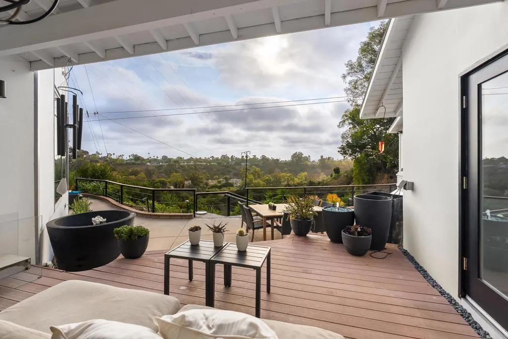 Mid-Century Modern Beauty with Ocean Views on 1.24 Acres in Leucadia Welcome to a rare opportunity to own a completely reimagined 1956 mid-century modern, situated on 1.24 private acres in the hills of Leucadiaone of San Diegos most sought-after coastal communities. This single-story home combines timeless architecture with extensive, high-end renovations, delivering ocean and hillside views from nearly every room. Inside, youll find modern finishes throughout, with attention to detail in every space. The bedroom wing has been completely rebuilt from the floors up, offering updated construction, style, and peace of mind. The result is a seamless blend of mid-century charm and contemporary luxury. Step through the front door into a sunlit living area with panoramic picture windows and sliding glass door that invite the outdoors in. The living room, complete with a gas fireplace, flows into the dining area and a sleek galley kitchen featuring quartz countertops, stainless steel appliances, modern cabinetry, and designer hardware. The primary suite is a serene retreat with expansive views, remote-controlled shades, an en-suite bath, and a spacious dressing room with its own washer and dryer. Each of the four bedrooms features oversized upgraded solid-core doors, and one includes a private entrance, making it ideal for guests, in-laws, or rental income. Additional highlights include: 2020 4-zone Lennox Elite HVAC for customized comfort Two full laundry areas, each with washer and dryer Luxury vinyl plank flooring throughout No interior steps for easy accessibility Garage p