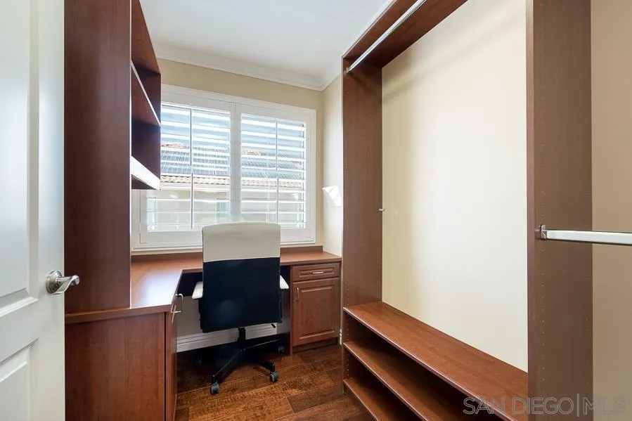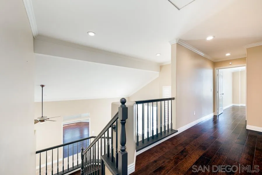 Welcome home to your magnificent estate with upgrades from top to bottom – crown moulding, interior designer paint, Travertine and engineered wood flooring throughout, adjustable wood shutters, crown moulding, granite countertops, intricate backsplash designs, newer AC, solar, and much more. Downstairs features one full bedroom with walk-in closet and one full bathroom with tub/shower combo. Upgraded LG washer/dryer. Entertainer’s kitchen with large eat-in island kitchen, stainless steel appliances including newer fridge, gorgeous cabinetry, and breakfast/nook overlooking your stunning yard. Cozy family room opens from your kitchen with backsplash accent fireplace wall. Seamless flow to your formal dining and living areas with high volume ceilings. Downstairs also features a large bonus room which can be used as an oversized office, movie room, play room, etc! Palatial primary bedroom with stunning views of your serene garden and canyon views. Two walk-in closets and unique primary bathroom with upgraded finishes in vanities, separate tub, and shower. Two large secondary bedrooms – one with a perfect walk-in closet/study room and another with high ceilings and bountiful space. Secondary upstairs bathroom finished with a modern touch. Countless opportunities to create your own garden of paradise. Large and wide driveway and side yard has plenty of storage space with a large tool shed. One-Of-A-Kind Park Village end of the cul-de-sac beauty with spectacular panoramic views. Close access to highways 56, 15, and 5. Minutes to Park Village Elementary and Penasquitos Creek Park