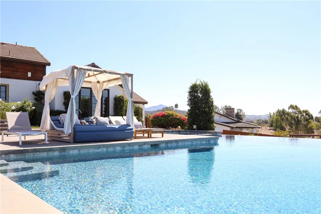 Discover a rare opportunity to own two modern single-story estates on one expansive lot in the highly sought-after 4S Ranch community. Designed with both luxury and independence in mind, each residence offers complete privacy with its own kitchen, driveway, garage, and laundryperfect for multi-generational living or hosting extended guests in absolute comfort. Floor-to-ceiling glass windows and panoramic sliding doors frame breathtaking sunset views, while a dramatic vanishing-edge pool creates a seamless connection between home and horizon. Thoughtfully equipped with solar power, these estates embody the perfect balance of contemporary elegance and sustainable living. Inside the primary estate, soaring exposed wood-beam ceilings and an open floorplan establish a sense of grandeur, while custom fixtures and finishes elevate every detail. The chefs kitchen is a centerpiece of design, featuring sleek quartz countertops, premium stainless steel appliances, and a Savant Home System for effortless smart living. With 5 bedrooms, 5.5 bathrooms, and 4,015 square feet of refined space, this residence offers unmatched sophistication and versatility. The second estate enjoys its own private driveway, garage, laundry, and backyardrecently reimagined with a complete remodel inside and out. Totaling 2 Bedrooms, 1.5 bathrooms and 2,047 square feet, with bespoke fixtures, finishes, and a thoughtfully curated open floorplan, it offers both privacy and luxury in equal measure, making it ideal for distinguished guest accommodations or multi-generational living. Together, these solar-powered e