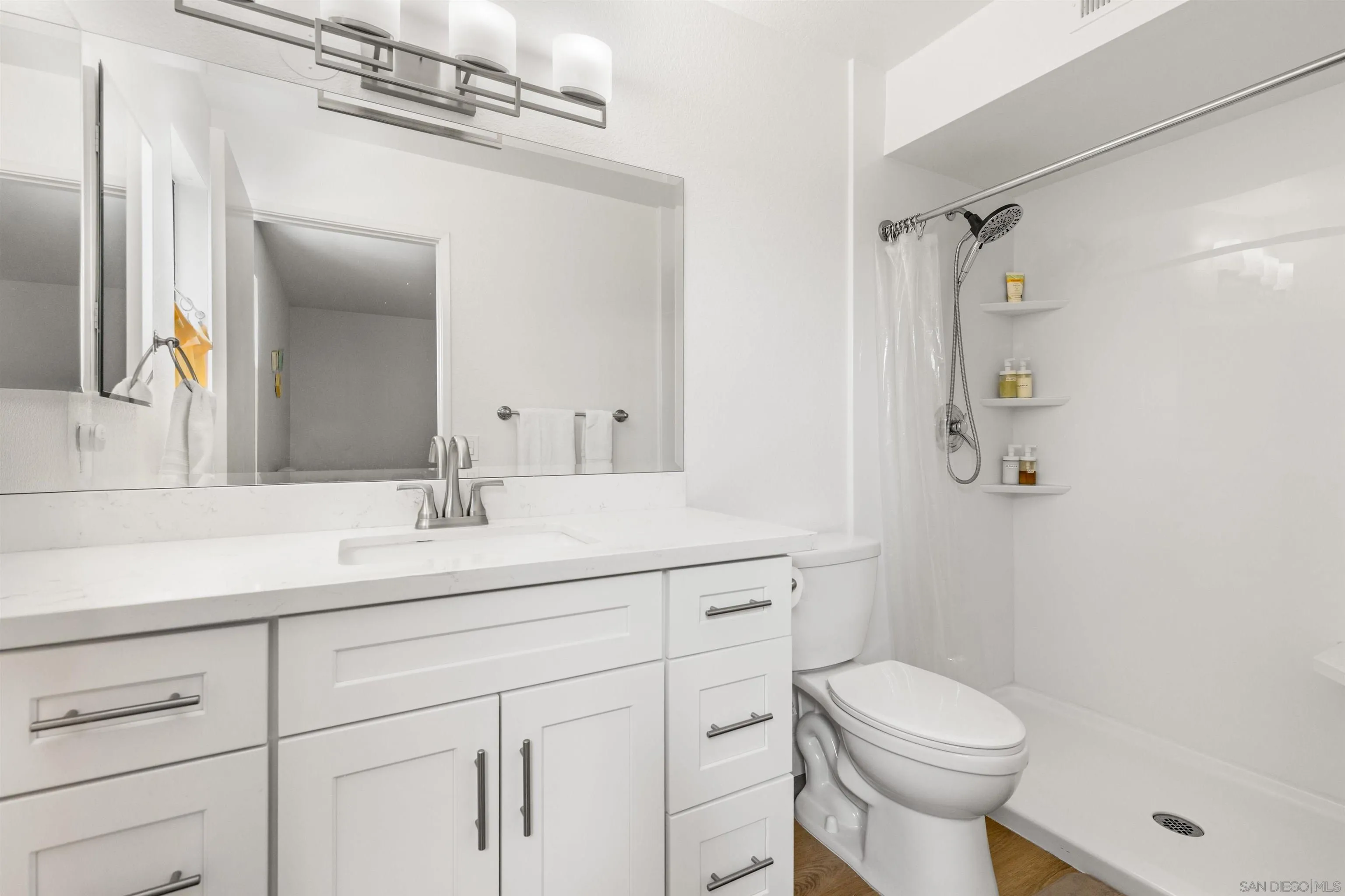 Welcome to your private urban retreat in the heart of University Heights. This beautifully updated 2Bed, 2Bath end unit offers exceptional privacy, abundant natural light, and a rare combination of features that distinguish it from every other condo in the complex. Step into a spacious open-concept layout featuring sleek quartz countertops, upscale stainless steel appliances, and a custom butler’s pantry with 10 feet of additional countertop and storage. Enjoy the convenience of an in-unit 4.8 cu. ft. all-in-one washer-dryer that is large enough to handle a king-sized comforter. The expansive primary bedroom includes a private ensuite bathroom, the unit is equipped with central heating and air for year-round comfort. Relax on your private balcony with sunset views and seasonal firework displays from SeaWorld. Located on the same level as the garage (Level 1), this unit shares only one wall for added tranquility. What sets this unit apart is a private tandem garage that includes an attached 8′ x 10′ storage area. There’s ample space for two vehicles plus easy access to surfboards, toys, seasonal gear, and other lifestyle essentials. The gated community offers two rentable guest suites for visiting family and friends, EV charging stations, and low HOA fees that covers hot and cold water, trash, and exterior maintenance. Walkable to Hillcrest, Normal Heights, and Kensington, with easy freeway access and proximity to top-tier dining and shopping. To top it off all appliances are included! This is one of a kind!