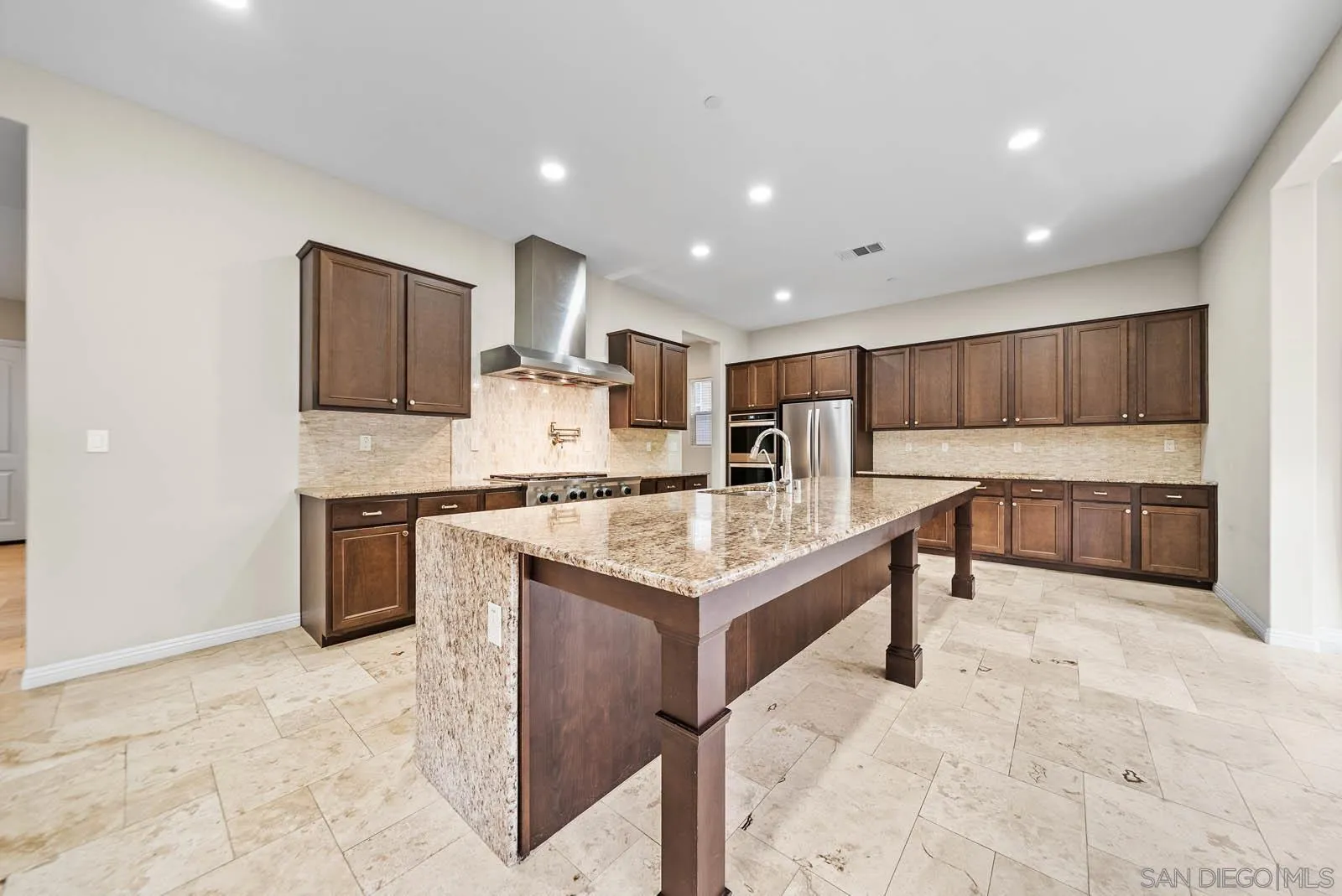Former model home in the heart of Otay Ranch featuring dual primary suites, including a highly sought-after first-floor primary—ideal for multigenerational living, guests, or a home office setup. This bright, turnkey residence offers a spacious loft and an open-concept floor plan perfect for modern living and entertaining. The chef’s kitchen is the centerpiece of the home, showcasing a massive granite waterfall island, premium KitchenAid appliances, 6-burner gas range with griddle and pot filler, double ovens, large walk-in pantry, and abundant cabinet and counter space. The kitchen flows seamlessly into the dining area and great room with surround sound and oversized windows providing excellent natural light. Downstairs features elegant travertine tile flooring, a striking iron staircase, and a private main-level primary suite with full bath. Upstairs, the second primary retreat offers custom built-ins, a spa-like bathroom with soaking tub, dual vanities, floor-to-ceiling tiled walk-in shower, oversized walk-in closet, and a flexible loft space. Enjoy Southern California outdoor living with a covered travertine patio, Napoleon electric fireplace, trellis with built-in BBQ, and low-maintenance yard. Energy-efficient upgrades include leased solar, EV pre-wire, tankless water heater, water softener, and epoxy garage flooring. Close to parks, top-rated schools, shopping, and dining.