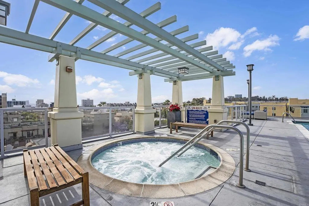PRICE REDUCTION – FANTASTIC OPPORTUNITY! Experience the height of modern elegance in this impeccably designed 2Br 2Ba residence with den, offering the perfect blend of style and urban sophistication. Discovery at Cortez Hill is a contemporary full service luxury building offering residents comfort, convenience, and security. Expansive open-plan living areas flow seamlessly across honed travertine floors, illumilnated by statement lighting and spectacular views framed by floor to ceiling windows with automated roll-down shades and a beautiful gas fireplace. Entertain guests at the elegant bar or move to the private balcony with views of Balboa Park and the beautiful mountains to the east. Peek bay views to the west and south add to the ambiance. The chefs kitchen is both beautiful and functional, featuring sleek Italian porcelain countertops, custom cabinetry, and top-tier stainless steel appliances; an entertainers dream that anchors the homes refined aesthetic. The serene primary suite invites relaxation with blackout shades and drapes, for a restful night’s sleep and a spa-inspired bath with dual marble vanity, soaking tub, walk-in shower and generous storage. The 2nd bedroom and bath provides comfort for family or guests while the versatile den provides the ideal setting for a home office, media lounge, or creative space. An in-unit laundry and walk-in pantry provide storage and convenience. The building features 24-hour concierge, a state of the art fitness center with separate weight room and cardio equipment, steam room, and sauna. The rooftop lap pool, spa, barbecues