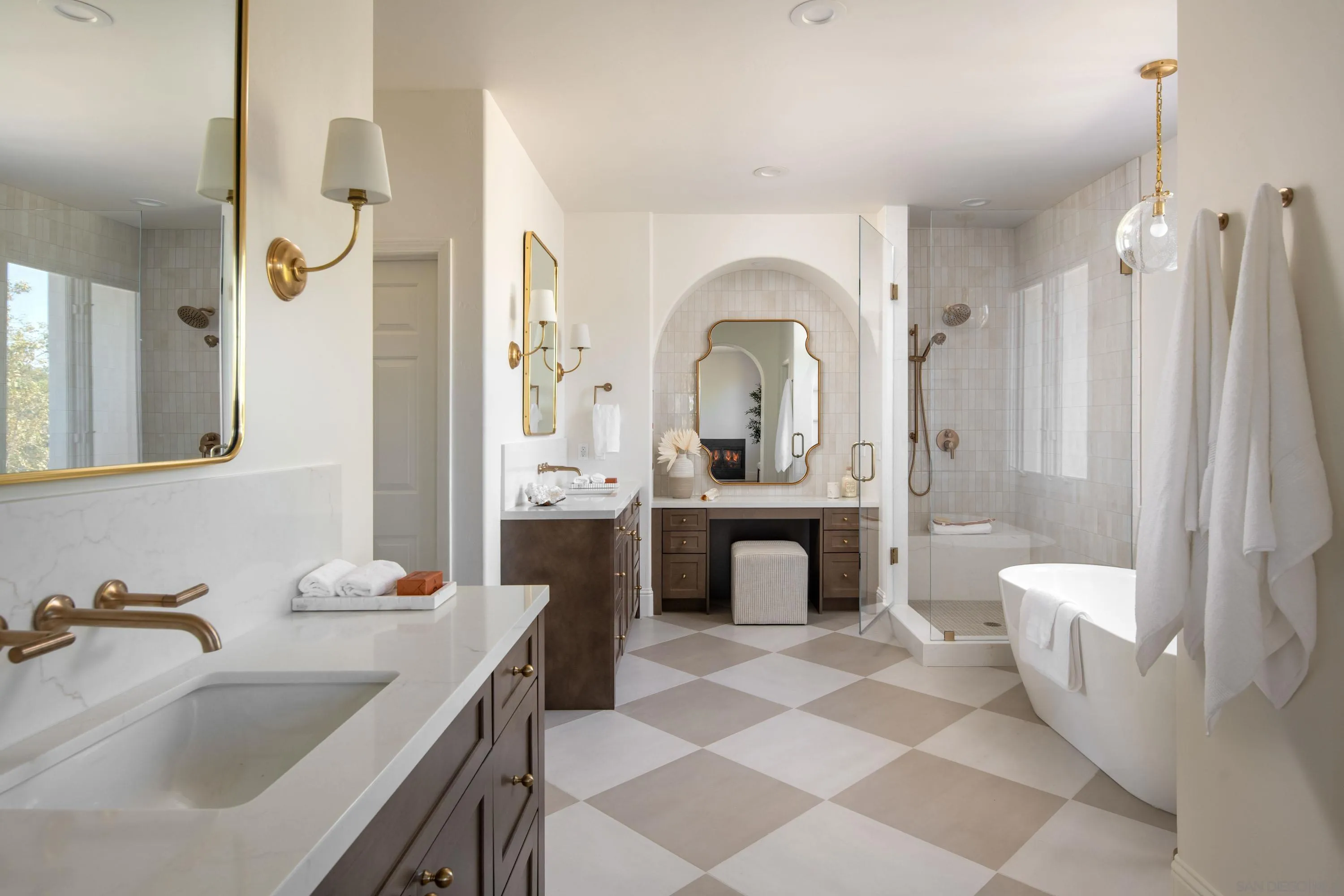 Tucked into the peaceful, bucolic hills of Olivenhain’s western countryside, this stunning modern Spanish estate—designed by Blythe Designs and remodeled by AVID Design and Build—offers luxury, space, and timeless design. Soaring 10–14 foot ceilings and a sprawling floor plan create a grand yet welcoming interior with extra bathrooms, a huge garage, and a master retreat complete with a private balcony. Set on a generous lot with over an acre and across from the Little Oaks Equestrian facility and a protected preserve, this home offers serene green views and complete privacy. There’s ample space for a pool, ADU, or future expansion to boost value with no HOA to limit your vision. The quiet street features friendly neighbors and easy access to top-rated schools, the beach, and the freeway. A massive driveway allows for privacy, effortless entertaining and guest parking. With room to grow and views to savor, this one-of-a-kind home blends country charm with refined design in one of Encinitas’ most desirable pockets.