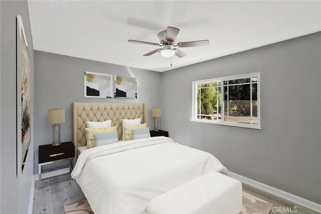 Welcome to this beautifully remodeled home in Ramona, where no expense was spared. Freshly painted inside and out using Sherwin Williams paint, this residence features new ceiling fans, CAT5 cabling for all your networking needs, and new LED recessed lighting. Enjoy a surround sound system with ceiling speakers, solid surface counters and window sills, and a luxurious marble master bath with heated flooring and three shower heads. The hallway bathroom has also been tastefully updated. The garage has been professionally converted into a family and media room, complete with a recessed floor outlet and stunning colored, polished flooring. The kitchen is equipped with stainless steel appliances, a ceramic cooktop, a new stainless steel vented hood, a moveable kitchen island, and a charming garden window. The updated laundry and utility room is plumbed for a sink, adding extra convenience. Step outside to an expansive fully fenced backyard featuring a metal shed, a 10×14 foot slab ready for a shop/or shed, a covered patio with misters, stamped concrete, and a propane firepitideal for entertaining. The yard also has two drive through 12 foot gates. The front of the home boasts a large 6-inch steel-reinforced, colored, and stamped concrete driveway with sidewalks and newly installed waterwise landscaping. Additional highlights include a newer roof with transferable warranty, paid solar, RV parking with a 50 Amp panel, an owned propane tank, a backyard sprinkler system, as well as front and backyard drip irrigation all on timers. There is a view of the hills from the front of the h