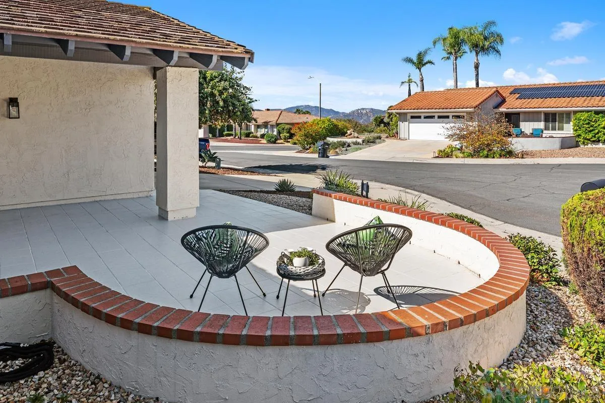 ***Gorgeous Completely Remodeled Home Tucked Into a Quiet Cul-de-Sac in Rancho Bernardo’s Desirable Oaks North 55+ Community***This single story home offers the perfect blend of modern comfort and resort-style living! Relax and enjoy mountain views from the front veranda.***Located less than a mile from the Community Center and just one mile from Bernardo Winery, the home provides the ideal balance of retreat-style privacy and convenient access to some of RB’s best amenities.**The fully renovated interior showcases airy vaulted ceilings, luxury wood vinyl plank flooring, and recessed lighting throughout. In the chef’s kitchen, you’ll find custom Shaker cabinetry, quartz counters, and ceiling height designer tile backsplash. It also features high-end stainless appliances and an eat-in peninsula with extra storage which seamlessly articulates the kitchen and dining areas.**The open floor plan offers distinct living & family rooms ideal for entertaining and relaxing. Both bathrooms are fully remodeled with designer countertops, tiles, lighting, flooring and fixtures.***The primary suite includes dual closets with mirrored doors, dual sinks and a walk-in shower. The 2nd bathroom provides a deep soaking tub.**Beautiful backyard views enhance the tranquility of the living areas and invite into the private oasis. Thoughtful low-maintenance landscaping with lush plantings and multiple patio areas are perfect for dining and entertaining.**Enjoy vacation-like living all year with access to Oaks North CC offering a gorgeous, lush 27-hole golf course and amazing Resort-Style Amenities!
