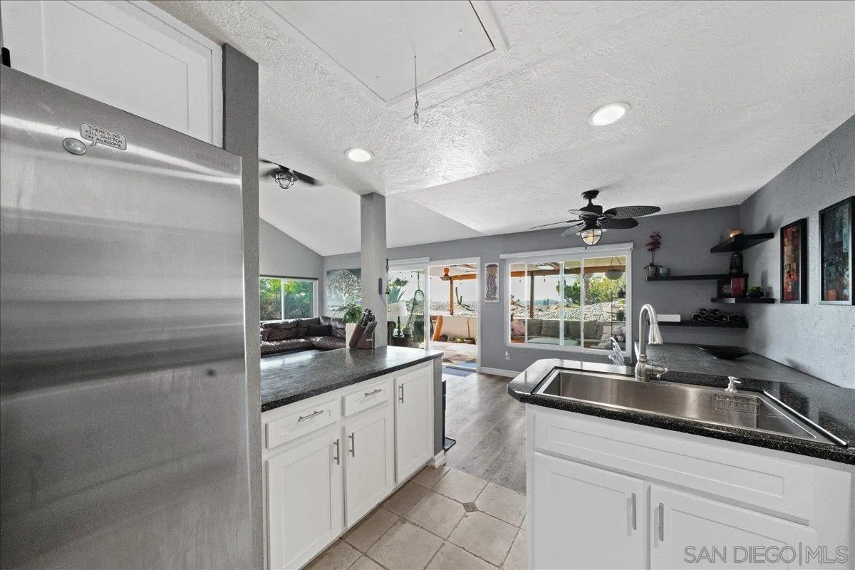 This charming 2-bedroom, 1-bath end-unit townhome is nestled in the highly sought-after Strawberry Hills community and offers a perfect blend of comfort, style, and convenience. Step inside to find vaulted ceilings, fireplace, and an updated kitchen that makes entertaining a breeze. Upstairs, experience single-level living with beautiful westward views — on clear days, you can even see the ocean! Relax or entertain on one of the largest patios in the complex with built in outdoor couch, ideal for enjoying San Diego’s perfect weather. Enjoy the abundance of natural light and amazing cross breeze, the private laundry, newer flooring and newer HVAC system add modern comfort and efficiency. The spacious attached 2-car garage provides direct access to the home and includes an extra room — perfect for a home office, gym, or even a potential third bedroom with bathroom, as some neighbors have done. This complex has 2 pools (heated), spa, newly built clubhouse and gym! Located close to shopping, restaurants, Grossmont Hospital, and with easy freeway access, this rarely available floor plan truly lives well. With one of the best locations in Strawberry Hills, this home is a rare find you won’t want to miss!