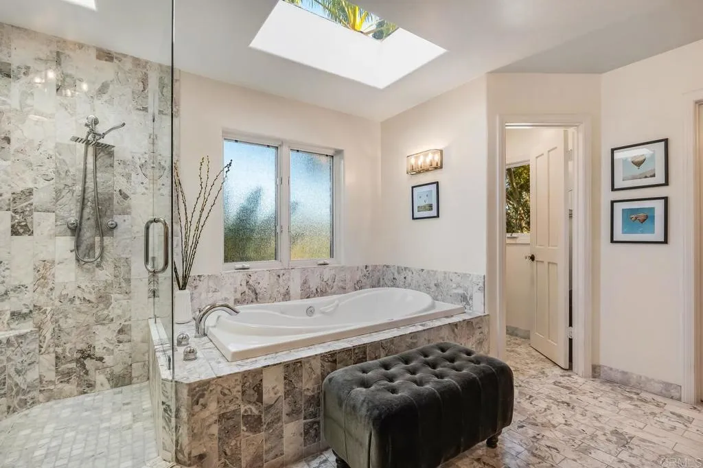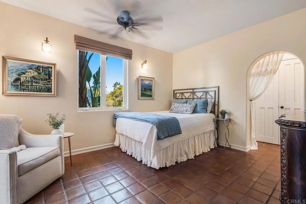Nestled on a half-acre hilltop lot in Olivenhain, this exceptional Modern-Inspired Italian Villa offers privacy and captivating Rancho Santa Fe views, treating you to inspiring sunrises, evening glow, and valley lights year-round. Step in the front door onto the beautiful Hickory hardwood engineered floors and immediately see the view through the expansive 20′ Marvin glass slider. There is plenty of parking on the distinctive stone-patterned main driveway or private 2nd driveway with easy access to the main level. Property highlights include a Chef’s Kitchen with island, two main level bedrooms, epic interior curved staircases and mezzanine, a 19′ x 23′ Great Room with 20′ ceilings. Upstairs there is a romantic Primary Bedroom with a fireplace, arched windows, French doors, and a large private sun deck. Out back you’ll find an inviting estate pool with raised spa, an outdoor kitchen with BBQ, and a gently winding hillside trail that will take you to two terraces that are perfect for relaxing or entertaining! Natural light floods the interior with close to 40 windows and skylights creating an ambiance that enhances the elegance of this remarkable home. Experience the perfect blend of luxury and functionality, where every detail has been meticulously crafted to offer a lifestyle of comfort and sophistication.