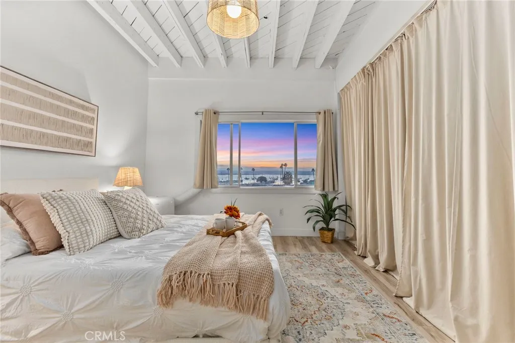 Experience coastal living at its finest in this stunning residence located in the heart of Little Italy, just steps from San Diego Bay. This spacious and airy 2 bedroom, 2 bath loft-style condo offers breathtaking panoramic views of the marina, city skyline, and vibrant sunsets over the water. The interior blends modern comfort with coastal charm, featuring soaring open-beam ceilings, exposed brick, and expansive windows that fill the home with natural light. The open-concept kitchen includes sleek countertops, custom cabinetry, and stainless-steel appliances, seamlessly connecting to the dining area and living space, perfect for entertaining or relaxing while overlooking the harbor. Each bedroom is uniquely positioned for privacy and comfort, highlighted by vaulted ceilings, natural light, and serene neutral tones. Both bathrooms have been fully updated with modern vanities, elegant tile, deep soaking tub and glass-enclosed shower. Enjoy effortless indoor-outdoor living from your rooftop terrace ideal for morning coffee or evening sunsets over the marina. Additional features include an in-unit laundry, luxury plank flooring, 1 covered parking spot, and a storage closet. Located just steps from the waterfront, cafes, restaurants, and the iconic Little Italy sign, this residence offers a rare blend of sophistication and coastal charm in one of San Diegos most sought-after neighborhoods. A perfect urban retreat where modern design meets endless views.