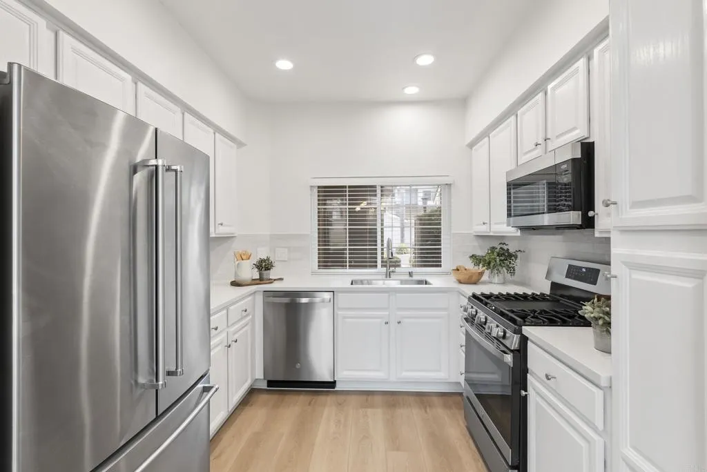Welcome home to this stunning move-in ready townhome that perfectly combines modern updates, style, and convenienceall in the community of Cambia, one of Carmel Valleys most desirable neighborhoods west of El Camino Real. Step inside to discover beautiful wide-plank flooring throughout and an inviting double-height living room ceiling that fills the space with natural light and a sense of openness. The newly renovated kitchen features sleek quartz countertops, a large stainless steel sink, and updated finishes that make cooking and entertaining a delight. Upstairs, youll find 2 comfortable bedrooms and beautifully updated bathrooms. Recent updates include new linen cabinet upstairs, new windows and blinds throughout, and new kitchen appliances as well as new washer and dryer. The primary bedroom enjoys its own ensuite bath and a large walk in closet. Outside, a charming private yard offers the perfect place to relax, garden, or enjoy morning coffee. The home also includes a large attached two-car garage with plenty of storage space. Located just minutes from One Paseo and Del Mar Highlands Town Center, youll have quick access to trendy restaurants, boutiques, fitness studios, and everyday conveniences. Commuting is easy with Highway 5 nearby, and the community amenitiesincluding a pool, jacuzzi, and tennis courtmake every day feel like a resort getaway.