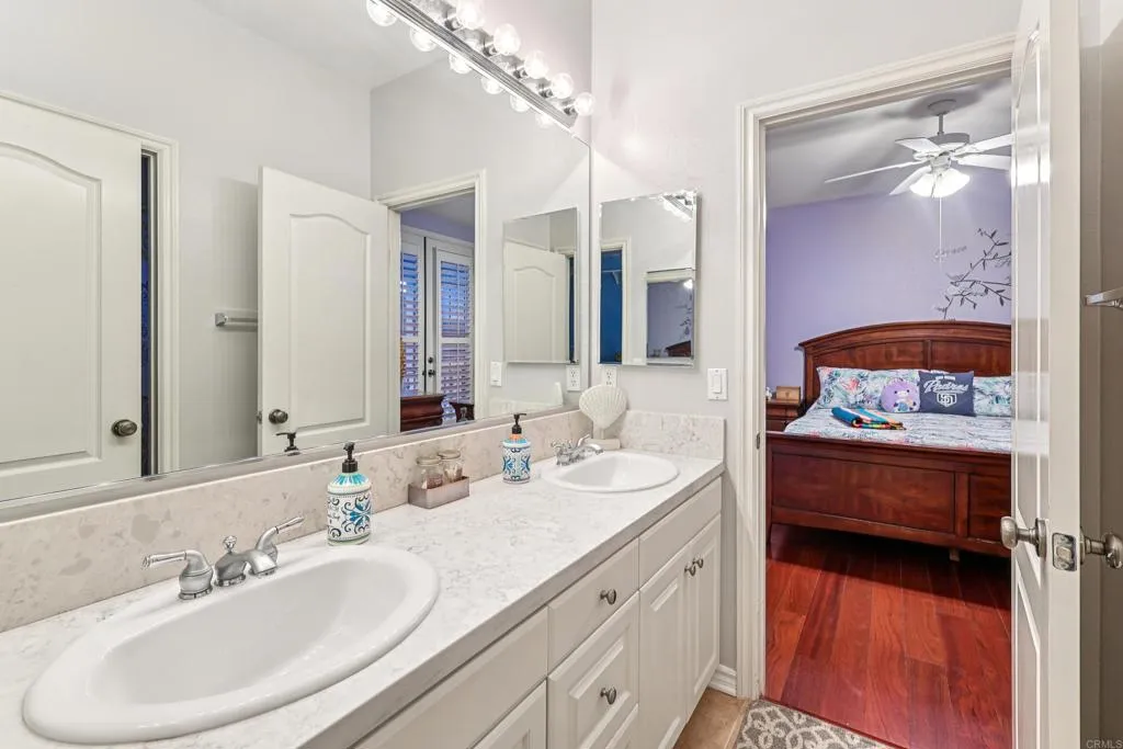 Experience refined living in this stunning 6-bedroom, 4.5-bath luxury residence perfectly positioned on a private corner lot in the heart of Rancho Peasquitos. Thoughtfully designed for both elegance and comfort, this home offers exceptional indooroutdoor living and an abundance of space for multi-generational needs. Step inside to a grand layout featuring formal living and dining rooms, a guest bedroom with full bathroom on the first floor, and an inviting open-concept kitchen and family room ideal for everyday living and entertaining. An upstairs loft provides additional flex spaceperfect for a media room, playroom, or home office. The homes generous bedroom layout includes two secondary bedrooms connected by a Jack-and-Jill bathroom, plus a spacious primary suite complete with a cozy fireplace, soaking tub, walk-in shower, and ample closet space. Outside, your private resort awaits. The expansive backyard features a sparkling pool and spa with waterfall, a built-in BBQ island, and multiple areas to relax and entertain. A charming front courtyard adds another serene space to enjoy morning coffee or evening gatherings. With owned solar, a highly desirable floor plan, and a location close to parks, top-rated schools, and local amenities, this exceptional property embodies luxury living at its finest.