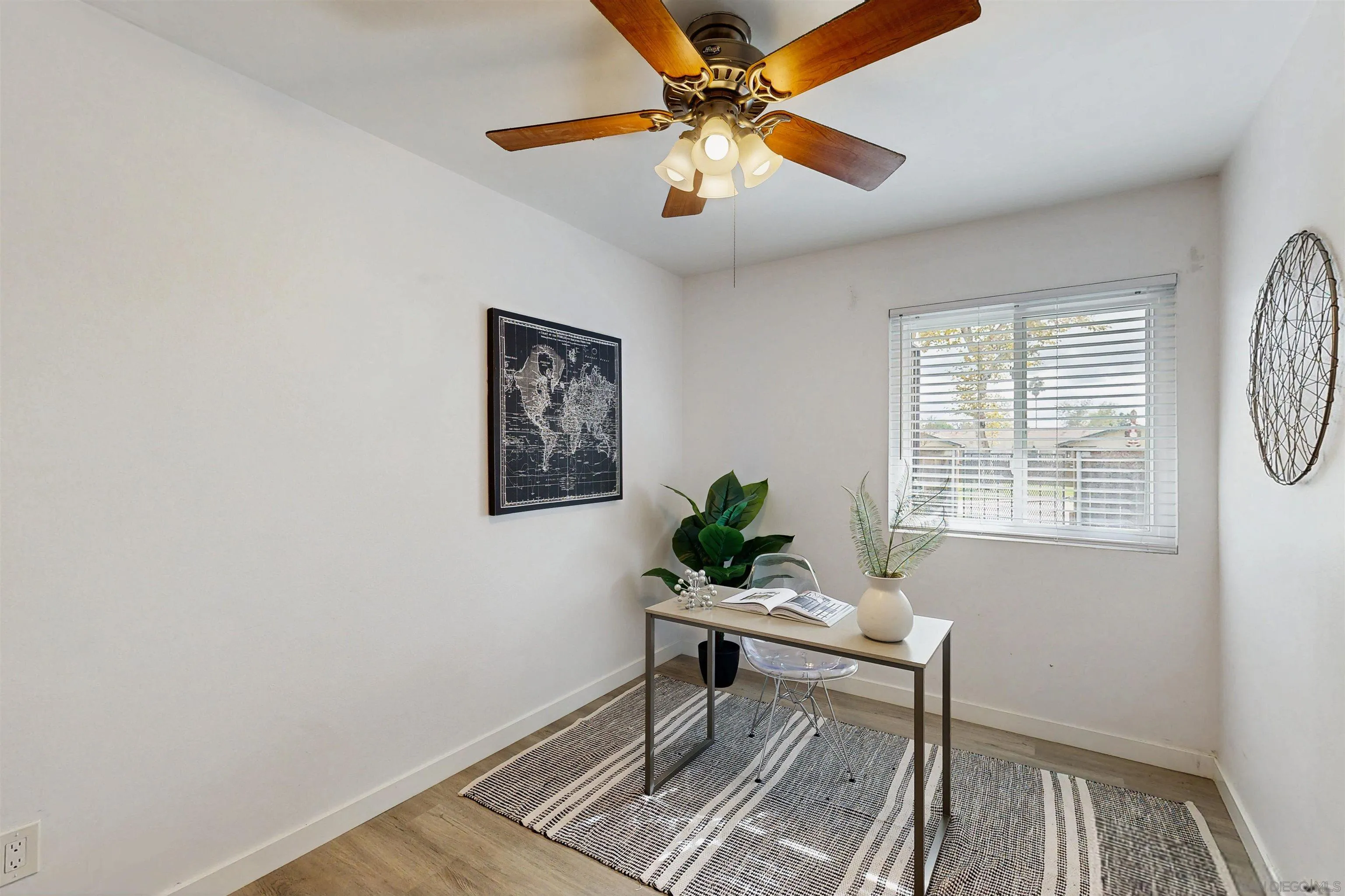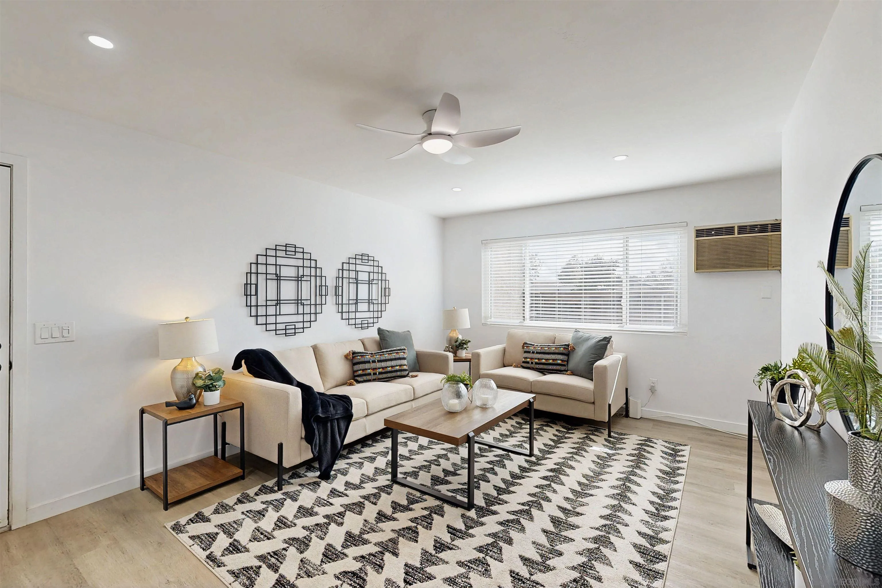 Incredible opportunity to own this beautifully updated 2BR, 1BA single-story corner unit in Riderwood Village. This home lives like a detached home with no one above and a generous-sized private yard perfect for relaxing, BBQs, gardening, or giving your pups room to play. Inside, you’ll love the refreshed kitchen layout with quartz counters, shaker-style cabinets, SS appliances, a smart slide-in gas range and a decorative overhead exhaust hood. The kitchen is open to the living room, creating a lighter, airier feel while keeping connection. Even more updates include recessed LED lighting, newer fixtures, and durable LVP flooring throughout. Dual-pane vinyl windows and owned solar with fixed-rate loan at $86.11/mo (buyer to assume) provide comfort, energy efficiency, and lower utility bills. Other features to love: a walk-in closet in the primary bedroom, full-size in-unit laundry, a 1-car attached garage plus an assigned parking space just outside. Don’t forget the additional possible savings with the assumable VA loan at 4.99% (subject to buyer’s qualification and seller’s and lender’s approval). Riderwood Village includes greenbelts, 3 parklike playgrounds, and 2 pools one of which overlooks Woodglen Vista Park that features sports courts, walking paths, skate zone, BBQ areas, a dog park, and more. You’re also close to Trolley Square, YMCA, and Sportsplex Santee for even more shopping, dining, and recreation options. Convenience, comfort, and community all in one. WOW ~ Welcome Home!