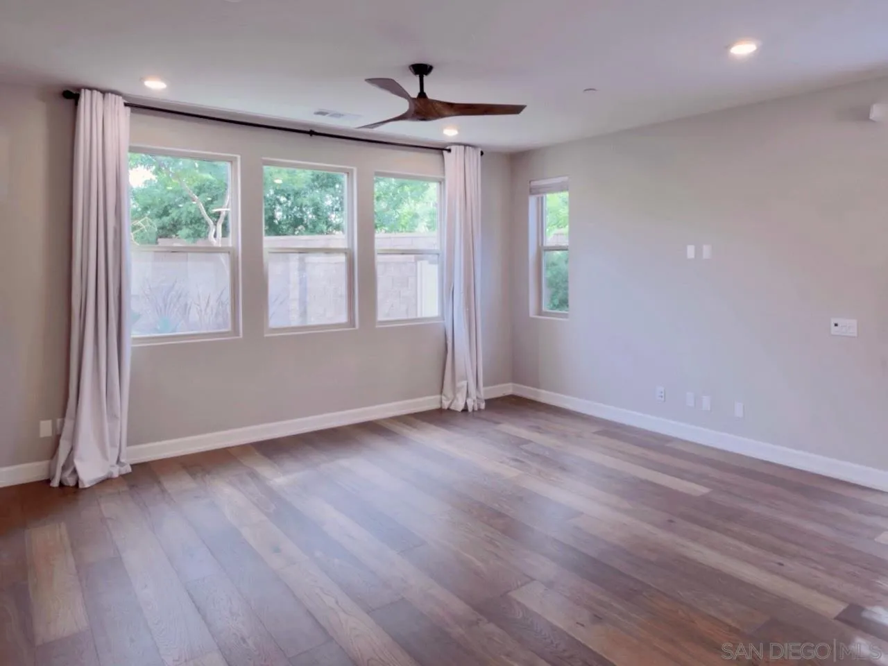 Located in the vibrant Pacific Village master-planned community, this near-new luxury 4BD/3BA home with loft sits on a desirable large corner lot. The functional and modern floor plan features 10 ft. ceilings and a spacious great room design with an open kitchen, dining, and living area that flows to the private patio and spacious backyard. This immaculate home includes numerous upgrades: reverse osmosis water system, tankless water heater, whole-home water softener, upgraded engineered wood floors, epoxy garage floors, Tesla EV charger, and 8 owned solar panels. Pacific Village offers resort-style amenities including a community pool/spa, BBQ area, walking trail and playground. Conveniently located near Poway schools, freeways, restaurants, and shopping.