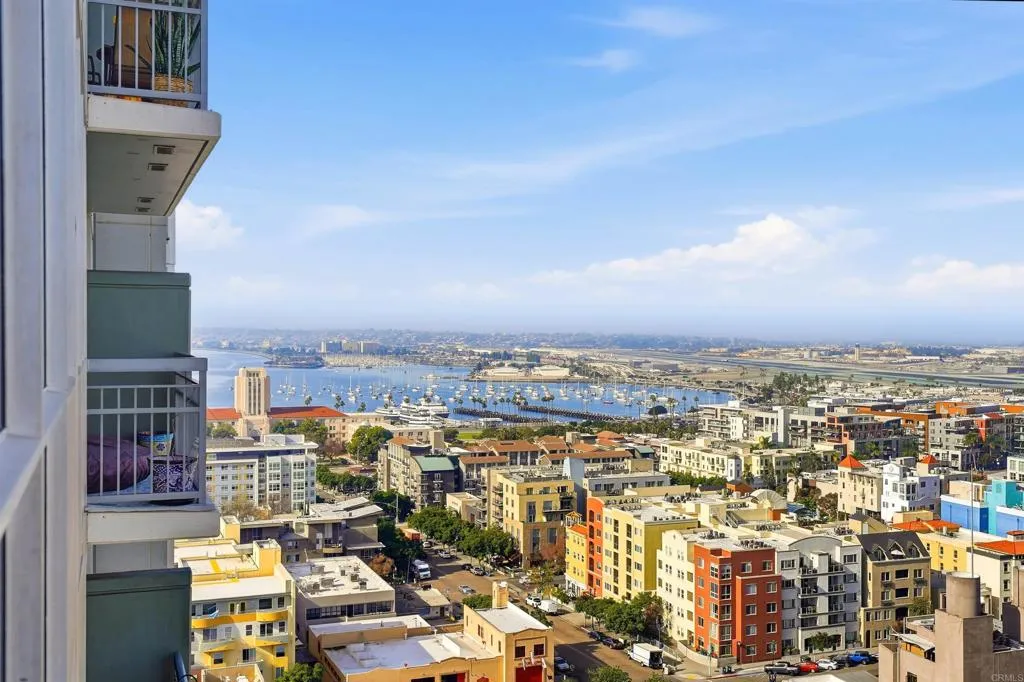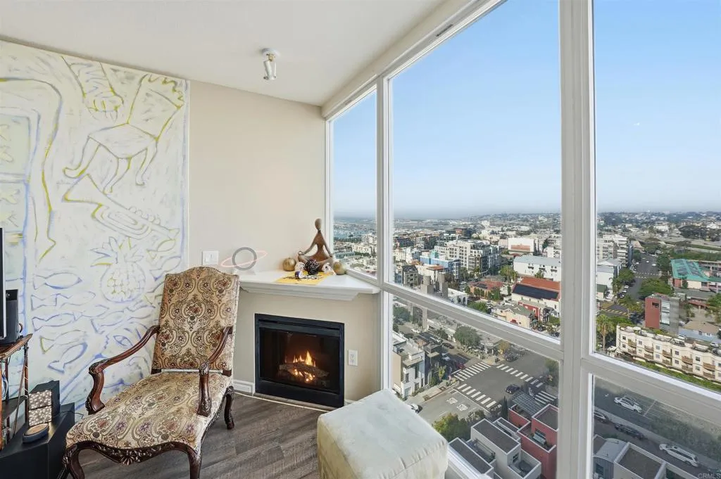 Discover elevated living in the heart of Little Italy at the prestigious La Vita community. Perched on the 17th floor, this refined residence offers sweeping views of the marina, sparkling ocean, and twinkling city skylinebeautiful by day, breathtaking by night. Thoughtfully furnished with designer touches throughout, the home features sophisticated lighting, elevated flooring, and a warm, contemporary ambiance centered around a charming fireplace. Step onto your private balcony to enjoy serene morning coffee or sunset cocktails framed by panoramic vistas. Convenience meets luxury with an in-unit washer and dryer, while the communitys resort-style amenities elevate everyday living. Indulge in the sparkling pool and spa, stay active in the state-of-the-art fitness center, or unwind in lush courtyard spaces complete with BBQ areas, bike storage, and a calming waterfall feature. Experience the lifestyle youve been dreaming ofthis exceptional residence is ready to welcome you home.