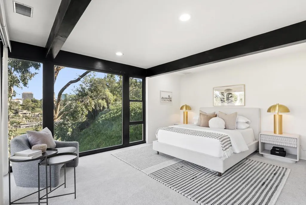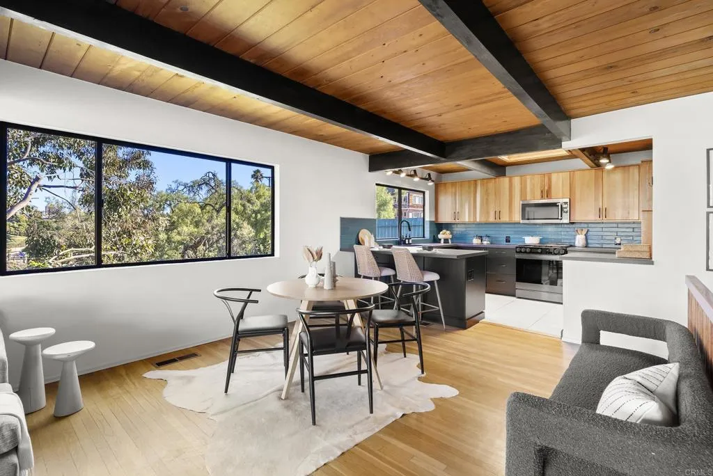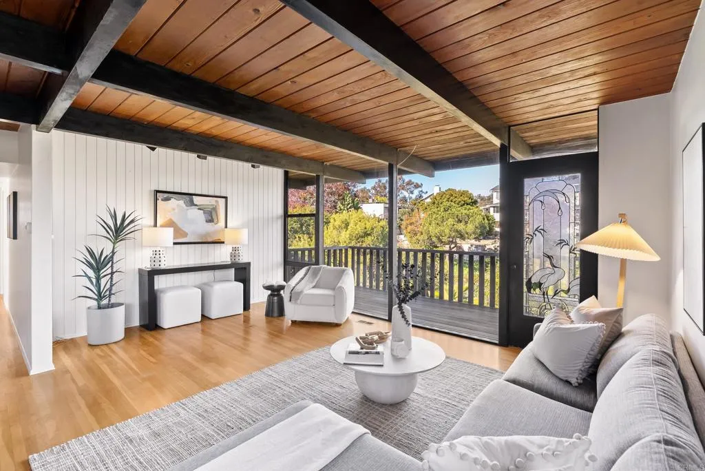 Welcome to 1004 West Walnut, a Mid-Century modern nestled in coveted South Mission Hills, one of San Diego’s most historic and desirable neighborhoods. This thoughtfully designed 1854-square-foot home features four bedrooms, three baths, rich wood ceilings and classsic hardwood floors in an airy layout enhanched by floor-to-ceiling windows. On the main floor, the newly remodeled kitchen is an entertainer’s dream, appointed with luxe appliances, abundant cabinets and striking ebony countertops. The living room walls of glass and adjoining deck provide sweeping views of of Mission Hills’ wooded canyons and nearby vintage architecture giving this home it’s signature treehouse character. On the lower level, the primary suite with private bath and generous closet space extend to another spacious deck, affording a quiet retreat for contemplation and enjoyment of the spectacular natural views. Stay cool and cozy with owned Solar. You’ll never want to leave the charm of this home, but when you choose to do so, you’re within minutes of the best San Diego has to offer, including Balboa Park the Zoo, Downtown and Little Italy. Close by is the Mission Hills Business district which will become a regular stop and the Newly remodeled San Diego International Airport is a short ride towards Harbor Island. This alluring property truly checks all the boxes for those seeking to create a personal space where the modern elements complement the historic.