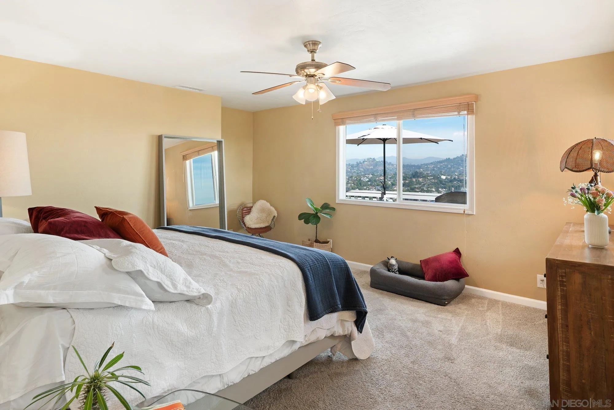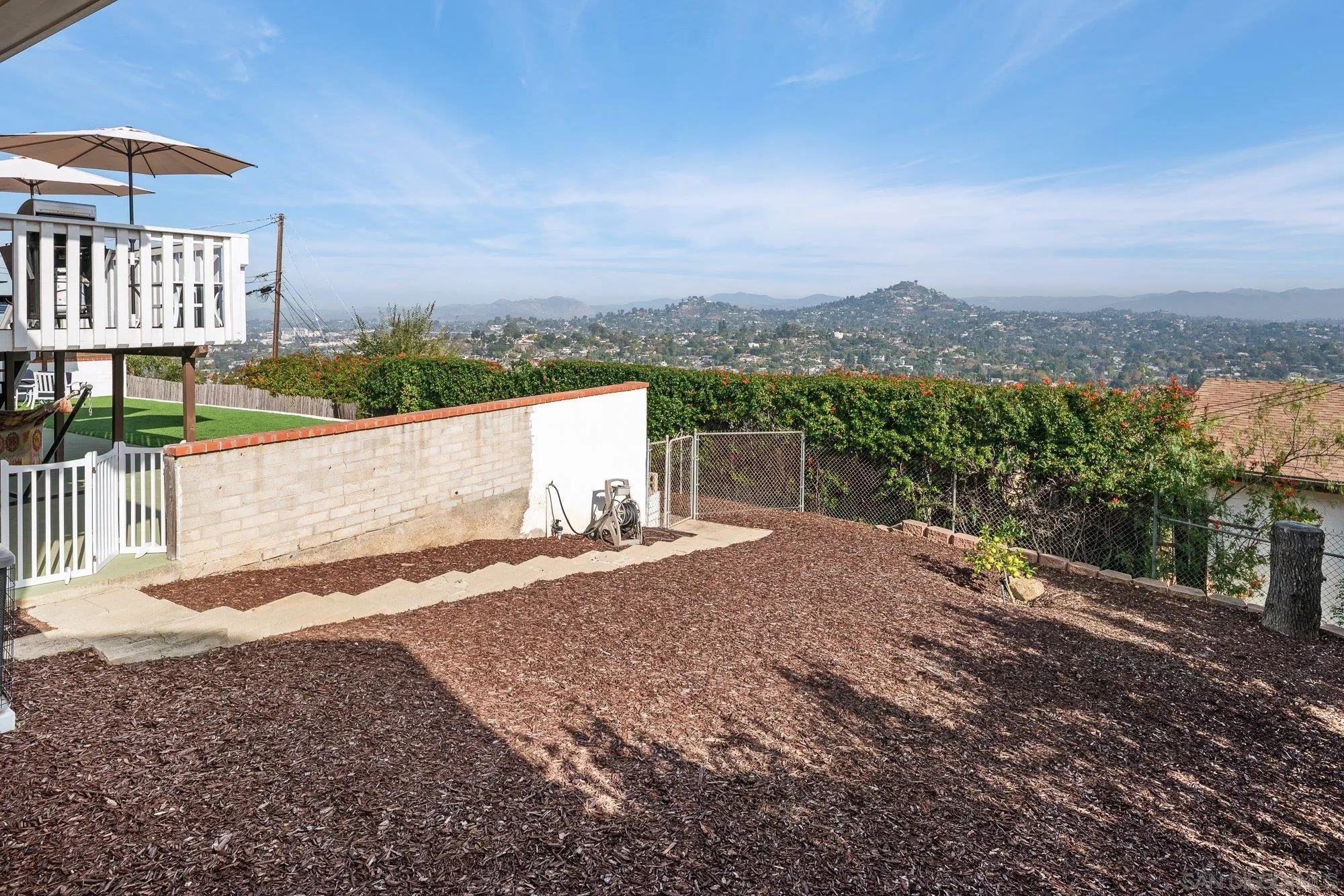 Windsor Hills single level NO STAIRS beauty with unobstructed views of the San Diego mountain range to the city below. Once inside, you’re met with an awe-inspiring picturesque view of Mt. Helix, Mt. Miguel, all the way to the lights of Mexico. Large picture windows and sliding glass doors open to your full-length private viewing deck whereas just below lies a large fully fenced backyard filled with fruit trees, a huge patio, and a side yard destined to become your private playground. A minutes walk or drive to the quaint Village of La Mesa to enjoy local shops, dining, entertainment and transportation. San Diego beaches, mountains and Airport are an approximate 20-minute drive. Located on a cul-de-sac street with little traffic, this simplified open concept room to grow home awaits your return after a full day of San Diego County living. Enjoy life and see yourself “Atop the Summit”