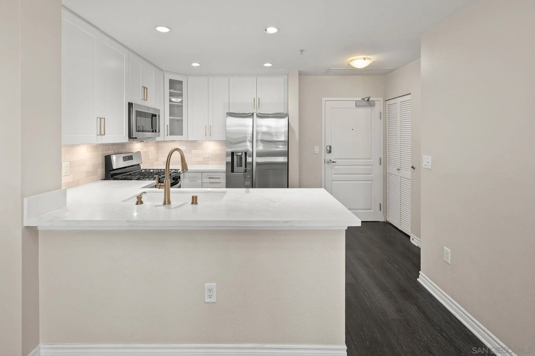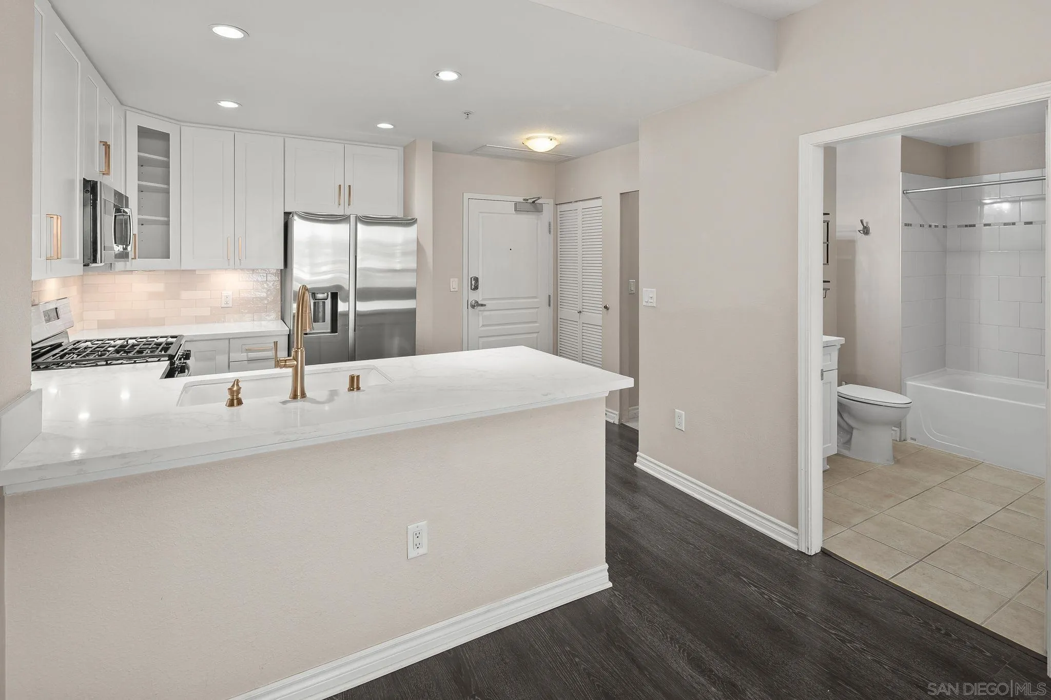 Welcome to your dream condo at La Vita Building, located in the vibrant heart of Little Italy, San Diego! This stylish 1-bedroom, 1-bathroom unit on the 5th floor offers a perfect blend of modern living and urban convenience. Step inside to discover a fully updated space featuring light and bright quartz countertops complemented by sleek white cabinets. The kitchen is equipped with all-new stainless steel appliances, ensuring a culinary experience you’ll love. Enjoy the convenience of an in-unit full-sized stacked washer and dryer. Relax in the cozy living room with a charming fireplace, or retreat to the spacious bedroom boasting dual closets for ample storage. Step out onto your private balcony and take in views of the serene fountain in the courtyard, a perfect spot for morning coffee or evening relaxation. The La Vita Building amenities include a well-appointed gym, a business center, and a full-sized swimming pool and spa for your leisure. You’ll also have the convenience of 1 assigned parking spot in the secure garage, complete with a handy cart for easy grocery transfers. Enjoy the vibrant lifestyle that Little Italy offers, with an array of local restaurants, cafes, bars, and events right at your doorstep, including the bustling farmers market. With easy access to the 5 freeway, Balboa Park, Seaport Village, the waterfront, and the airport, this condo is perfectly situated for both relaxation and adventure. Don’t miss your chance to rent this stunning condo in one of San Diego’s most desirable neighborhoods! Please note use of AI generated photos