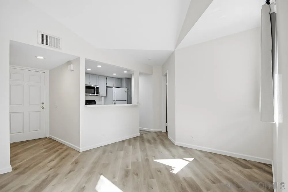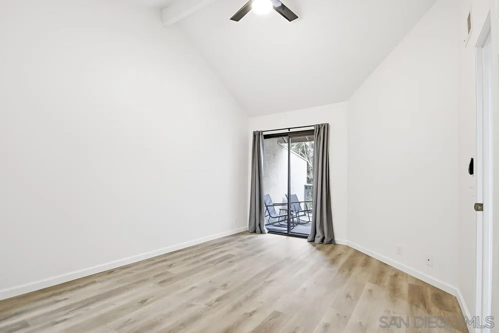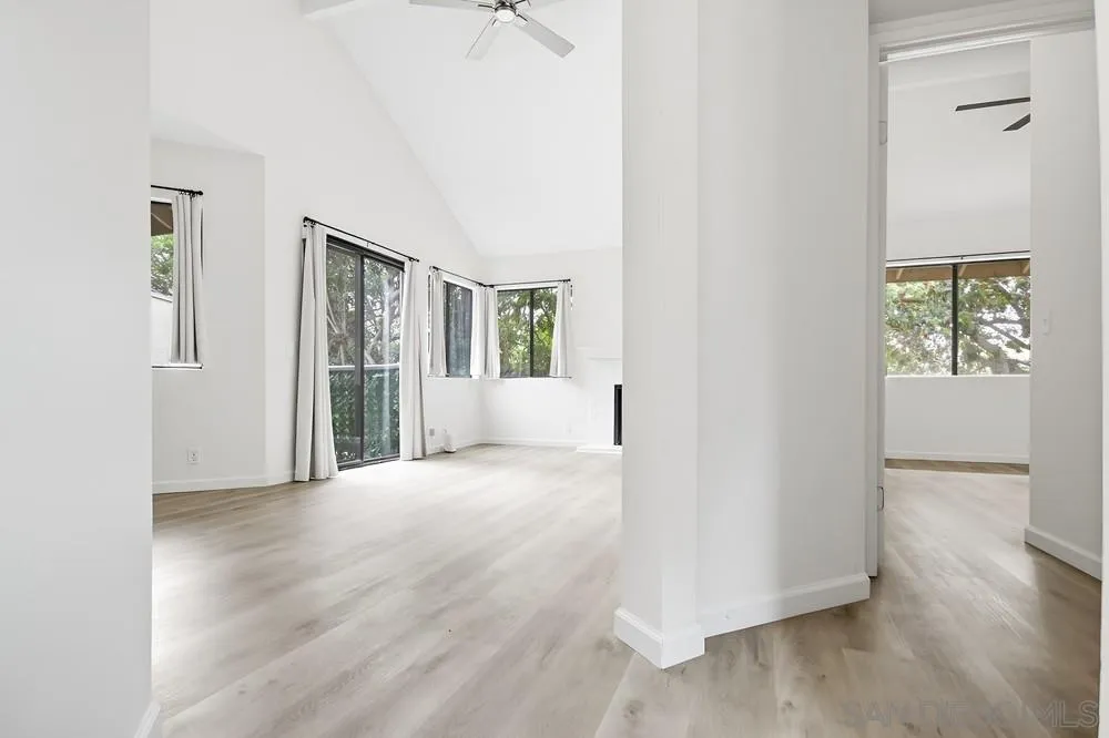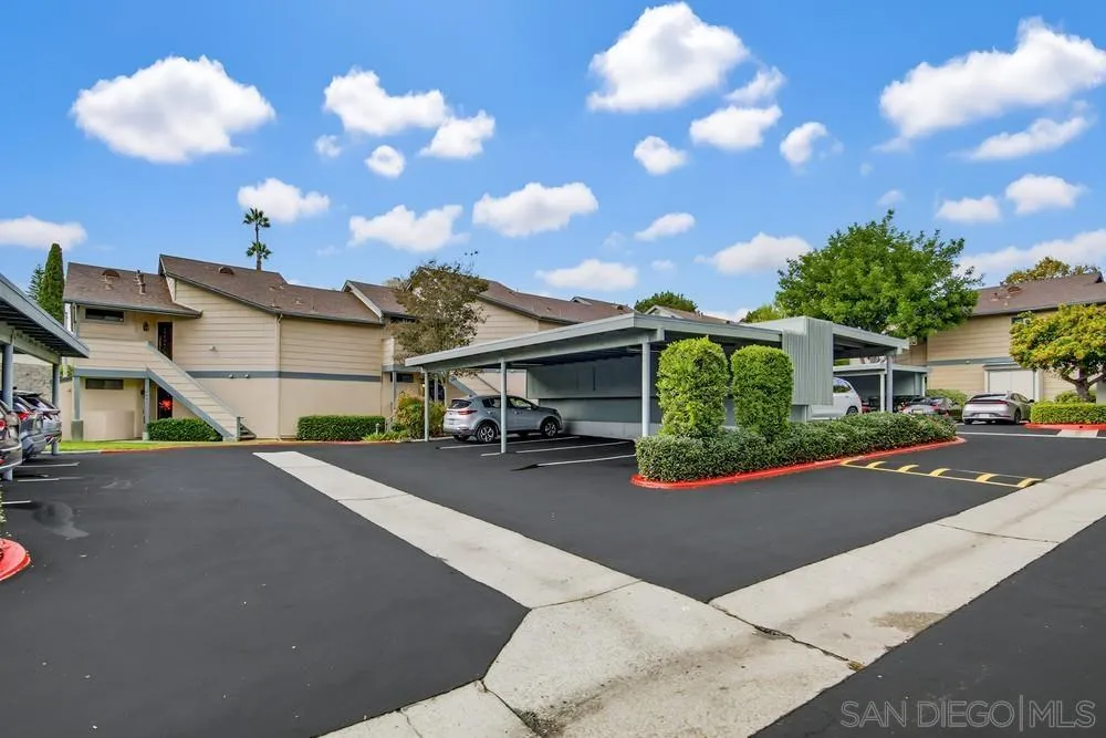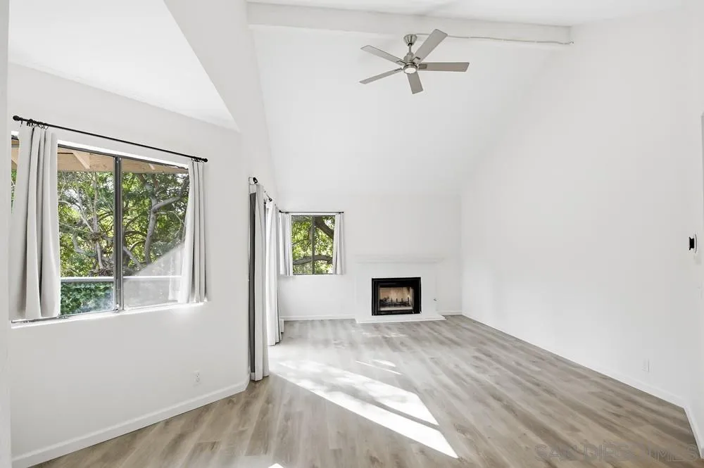op-floor 2-bedroom, 2-bath condo featuring an open floor plan and vaulted ceilings in the private Ranchwood community. This bright and inviting unit includes in-unit laundry with a stackable washer and dryer, a cozy living room fireplace, and central AC. The spacious primary bedroom offers a private ensuite bath, walk-in closet, and sliding door access to the balcony. Enjoy community amenities including tennis/pickleball courts, pool and spa, open grassy park areas with BBQs, and a dedicated carport with additional storage.