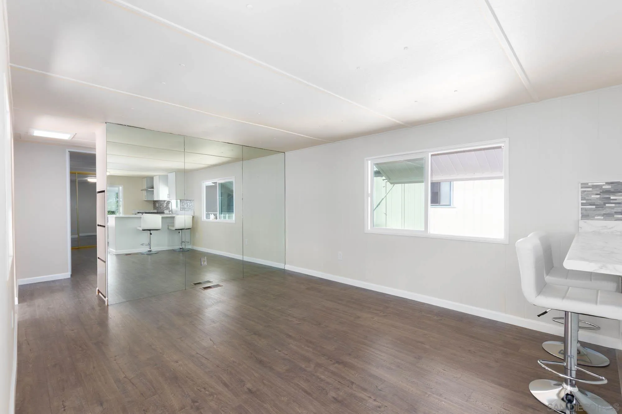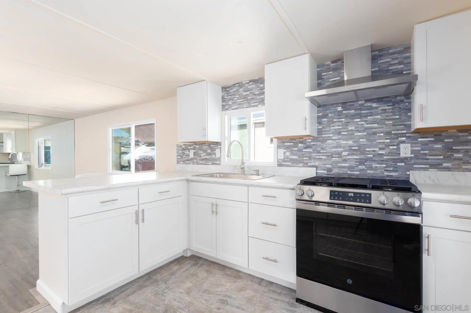 Pay No Property taxes!! PAY ONLY ANNUAL MOBILE REGISTRATION ($32.00 paid this year) on this newly remodeled 1-bed 1-bath mobile home in the heart of Chula Vista. Relax and retire in this beautiful home, featuring an upgraded kitchen and bath with brand new shaker cabinets, new stainless steel appliances, new flooring, new energy-efficient windows, plus an attached laundry room with washer and dryer included that has ample storage space. Welcome visitors with a covered 2-car parking driveway. Centrally located and close to Chula Vista shopping mall, restaurants, and trolley. 55+ Mobile home park has a clubhouse with billiard table/ping pong table and a pool to refresh and relax away from the Southern California days.