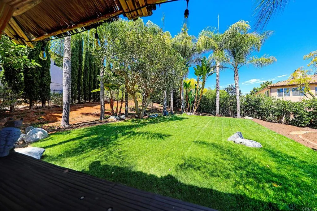 Lovely Resort Style Home with Spectacular Tropical Oasis Yard. Tucked Neatly behind Gated Entry in the Prestigious Enclave of Vista Grove Estates. 5 Spacious Bedrooms all with Views of the Surrounding Hills and Mountain terrain! Breathe and breathe again in this Peaceful setting. Serene Living is what this Home Boasts! A nearly 3/4-acre lot provides Ample usable space to roam whether it be Gardening, relaxing around the Stunning Solar Heated Pool with Spa and Water feature, or seeking shade in the Tiki Hut, and swinging in a hammock in the Large Grassy area. Numerous Fruit trees in the upper portion of the yard yield citrus, pomegranate, lemon, avocado and more! Gorgeous Palms surround the pool along with numerous other Foliage to provide a Majestic Resort Feel. Newer 9′ wide Luxury Vinyl Wood Plank Flooring throughout Home gives a modern rustic feel. Huge Kitchen with Island opens to large Family Room perfect for entertaining! Formal Living and Dining room accentuate the Entry! 2 Fireplaces. Large Patio off Kitchen area is great for quiet mornings with coffee and breakfast! 3 Car Garage and additional long driveway allow for 6 more car spaces. Come take in this Idyllic, Peaceful Setting while still only 20 minutes to the Beach!