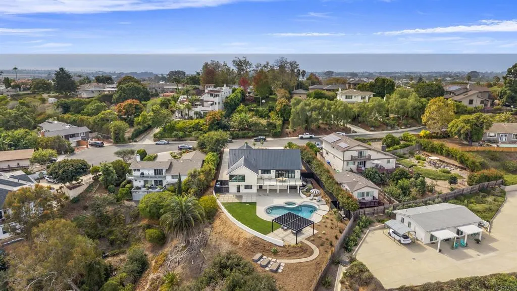 Perched high in Olde Carlsbads coveted Skyline neighborhood, this new construction coastal retreat captures the soul of California livingwhere sunlight pours through walls of glass and every day feels like a getaway. Just 2 miles to the beach, this open-concept design lives like a single story, blending effortless flow with an understated sense of luxury. Step outside to nearly half an acre of resort-style living: sparkling pool and spa, raised garden beds, and sunlit entertainment spaces designed for connection, celebration, and calm. Downstairs, a private lower level extends the experience with a media lounge, wet bar, three more bedrooms, and a chic attached JADUperfect for guests or multi-generational living. Every inch, from the circular drive to the hand-curated finishes, reflects a level of detail and warmth that feels rare. Quiet cul-de-sac. No highway hum. Just sunrise views, coastal breezes, and the sense that youve finally arrived home.