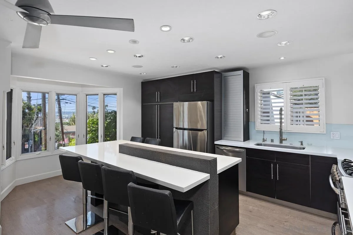 Live the San Diego lifestyle in this beautifully updated, modern, ideally located townhome in South Mission Hills! The large living room features an inviting fireplace and French doors that lead out to the private brick patio. The sleek modern kitchen features a spacious island, stainless steel appliances, a bay window, and a dining space with convenient access to the outdoor view balcony. Recessed and dimmable lighting throughout the space creates a bright, airy feel. The top level boasts a spacious master suite that is flooded with light—take advantage of the delightful harbor and city views with the west-facing balcony. The master bath is spa like and includes a walk-in closet, tub and separate rainfall shower, and skylight. The second and third bedroom share a balcony with west-facing views. Added bonuses include security system, hi-speed wifi, ample built-in closet storage, central heat and A/C, washer and dryer, and an oversized 2-car tandem garage that makes parking and storage a breeze…and by storage, we mean lots of storage! Best of all, this impressive home is just steps from a pocket of incredible restaurants, from Blue Water Seafood Market, to the iconic El Indio Mexican Restaurant, to the all new Burger Deck, plus Rubicon Deli, Shakespeare Pub, Saffron Thai and more. Ideally location with easy freeway access to downtown and beaches and only a hop skip and a jump from the airport for those who commute frequently. Don’t miss this amazing opportunity!