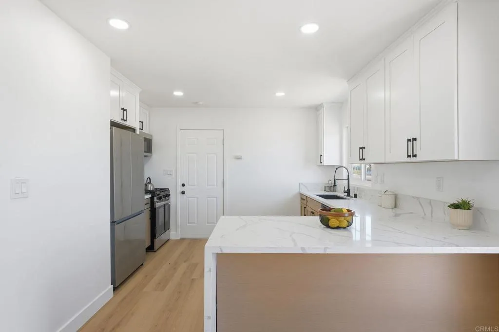 Beautifully Renovated Duplex in the Heart of Chula Vista Move-In Ready & Ideal for Investors or Multi-Generational Living! A fully updated duplex offering two stylish 2-bed, 1-bath units, each designed with modern finishes, private outdoor space, each unit has its own 1-car garage & laundry in garage a rare find in this desirable Chula Vista neighborhood. Both units feature newly remodeled kitchens with crisp quartz countertops, modern two-tone shaker cabinets, and stainless-steel appliances. The homes are enhanced with vinyl plank flooring, new interior doors, hardware, and fresh interior/exterior paint, creating a clean and cohesive look throughout. Each bathroom has been tastefully upgraded with contemporary tile work, new vanities, and designer fixtures. Step outside to enjoy your own private front and back yards, including a low-maintenance backyard with artificial grassperfect for relaxing, entertaining, or pets. Strong rental potential and ideal separation of space for tenants or extended family Whether you’re looking to house-hack, expand your rental portfolio, or live in one unit while generating income from the other, this turnkey duplex checks all the boxes. With its prime location close to shopping, schools, freeways, and parks, this property offers exceptional convenience and long-term value.