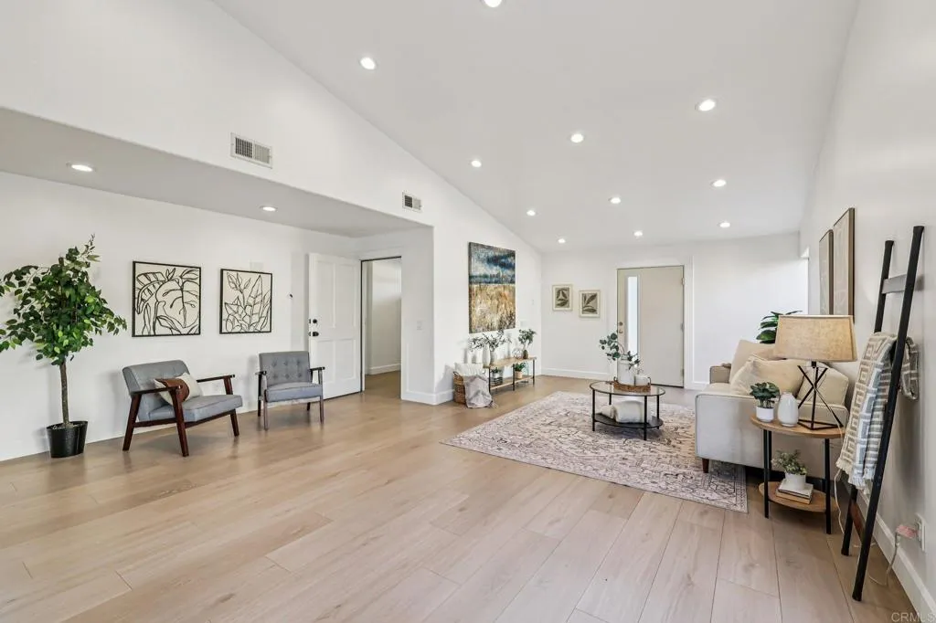 Situated in the highly desirable neighborhood of Rancho Peasquitos, this beautifully updated 5-bedroom, 5.5-bathroom residence offers exceptional value in one of San Diegos most sought-after communities. Located within the top-rated Poway Unified School District and spanning over 3,130 square feet, this thoughtfully designed home blends modern updates with versatile living spaces, providing an ideal foundation for your personal vision. The main level features an expansive great room-style layout that seamlessly connects living and entertaining areas, along with a secondary suite, two additional bedrooms, a private office, and a dedicated laundry roomperfect for multigenerational living, guests, or remote work. A striking floating staircase leads to the upper level, where youll find a spacious primary suite complete with a walk-in closet, custom-designed bathroom, and an oversized private deck ideal for relaxing or enjoying evening views. A second upstairs bedroom with its own en suite bath adds additional comfort and privacy. The large backyard presents a rare opportunity to create your dream outdoor retreat, with ample space for a pool, outdoor kitchen, garden, or entertainment areaall set on a generous cul-de-sac lot. Recent upgrades include a new electrical system with upgraded panel, a re-pipe of the interior water system, radiant roof barrier, and top tier insulation. The home is wired for upgraded HVAC systems along with smart home technology With no Mello-Roos fees, no HOA dues, and a prime location near shopping, dining, parks, and freeway access, this home offers b