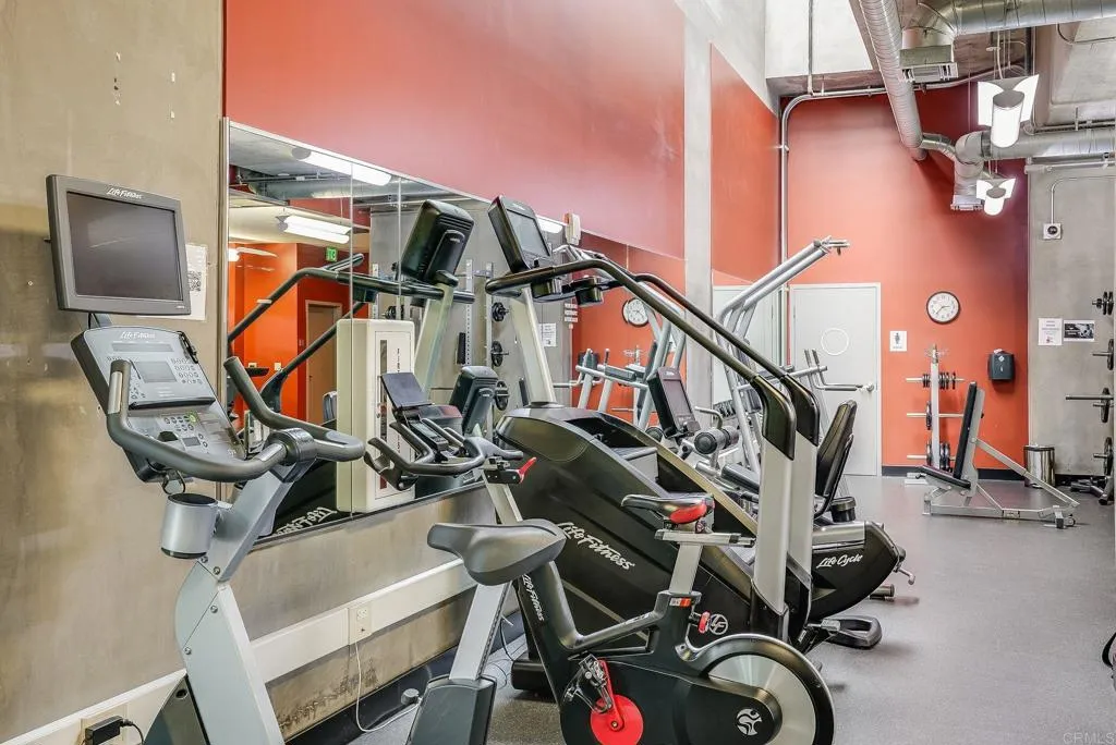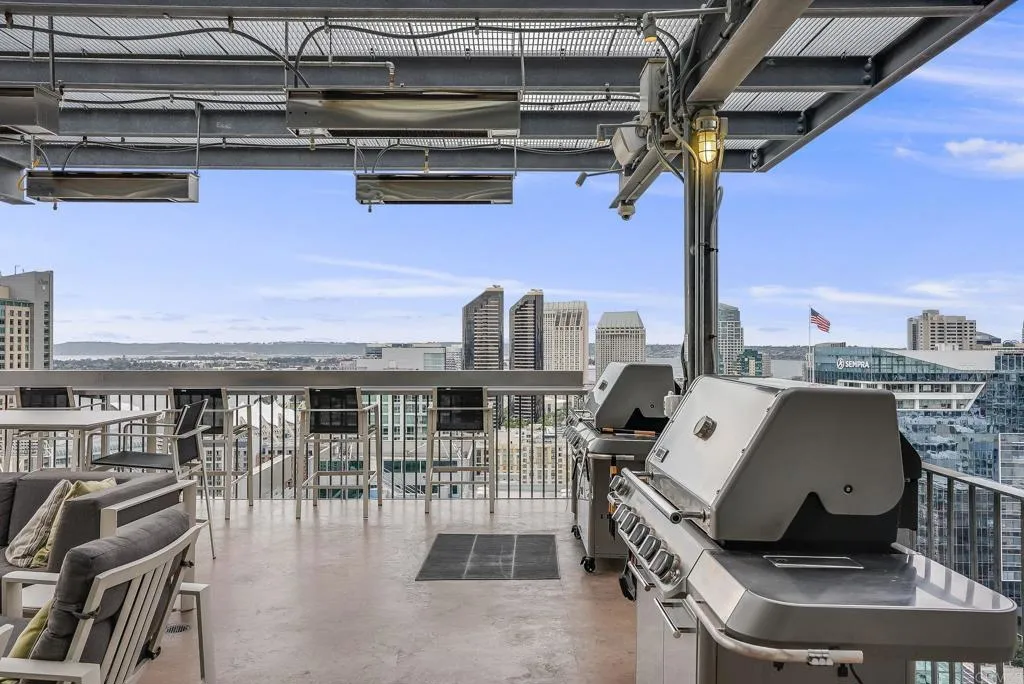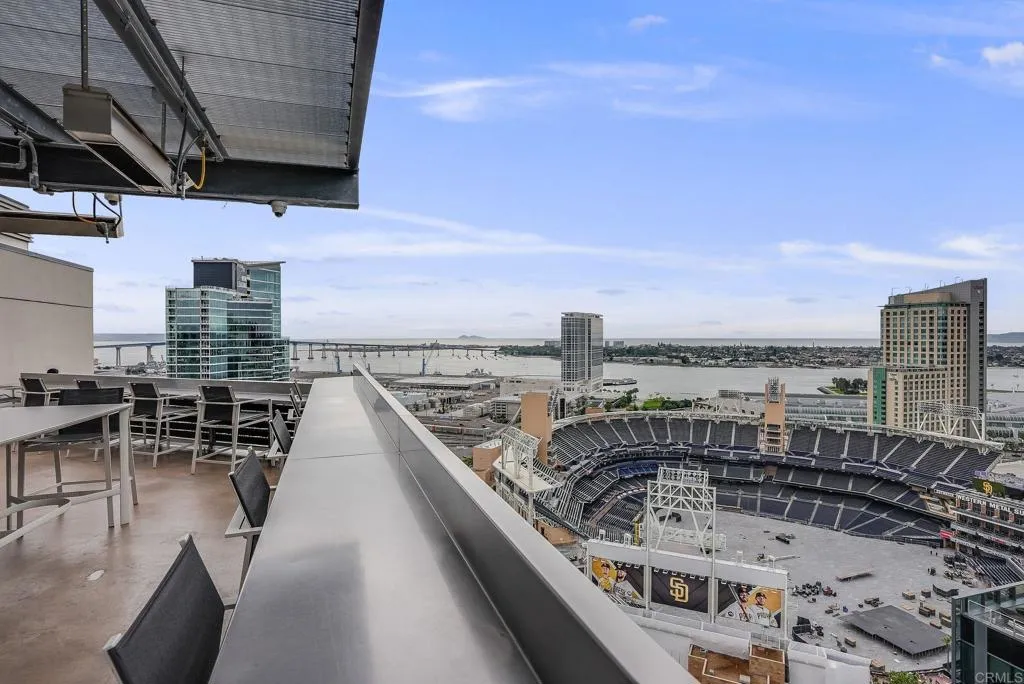 Fantastic opportunity to live in the heart of everything fun downtown! This bright, open unit is the perfect hideaway while being in the thick of it all. The exposed concrete finish, floor to ceiling windows and modern appliances complement the urban views. In unit laundry and the two spacious closets ensure practical livability. The views of the library and the Coronado Bridge are a highlight, although the building offers much, much more. A state of the art gym with machines and free-weights, an open air courtyard that’s a rarity downtown along with the secure entry and private parking space. The Skybox is among the most raved about amenities, allowing you a birds eye view of Padres games and concerts at Petco Park