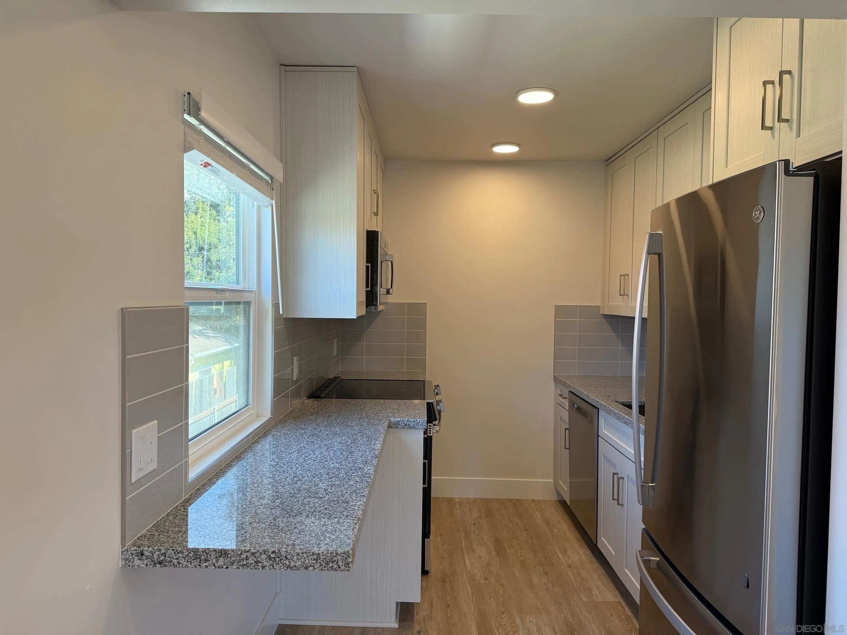 Completely renovated 2BR/1Ba corner upper level unit with peak of ocean views, laminate flooring throughout, great white kitchen with stainless steel appliances and granite counters walking distance to Wind n Sea beach, brand new common laundry room, one reserved parking space with individual EV charging station for the unit. Plenty street parking for guests. This is a six unit complex in great location with easy access to Wind’n Sea beach, shops and restaurants in Birdrock. Available for immediate occupancy.