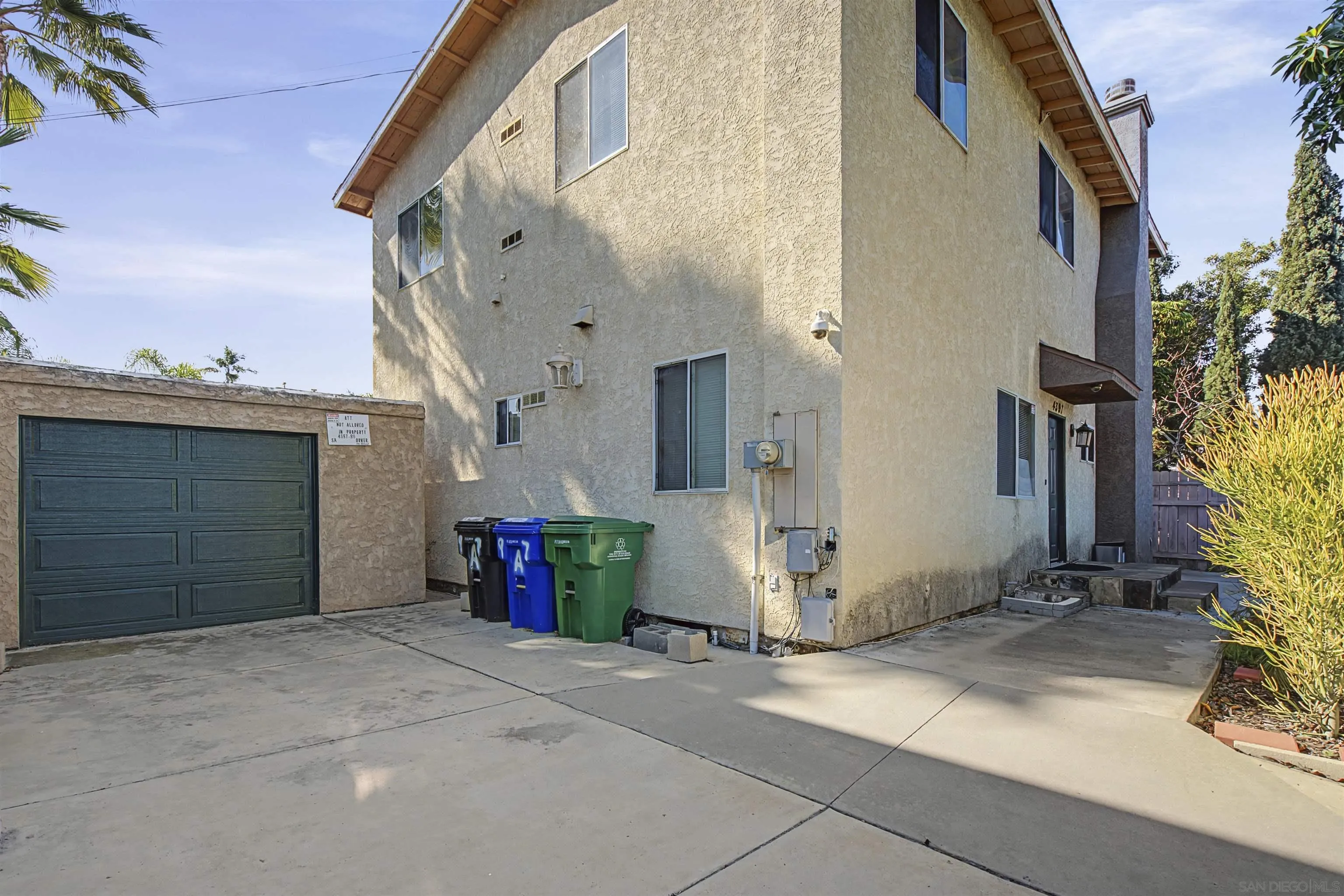 Discover an exceptional investment opportunity with this remarkable duplex, featuring the potential for an Accessory Dwelling Unit (ADU)! Boasting 4 bedrooms, 2 baths, and 2,300 sqft of thoughtfully designed living space on an expansive 5,000 sqft lot, this property is perfect for both comfort and versatility. Nestled in the heart of Normal Heights, this duplex is surrounded by tree-lined streets and a vibrant community atmosphere. Both units showcase an inviting open floor concept, fostering a seamless flow between the living, dining, and kitchen areas, all illuminated by abundant natural light. The well-maintained wood and tile flooring adds character and warmth throughout. Each unit is permitted and equipped with its own air conditioning and heating systems, water heaters, and washer/dryer hookups for ultimate convenience. The spacious kitchens feature reliable appliances—including a gas range and refrigerator—and a breakfast bar, ideal for casual dining. The downstairs unit boasts a cozy fireplace, while the upstairs offers a generous living room along with designated storage. Enhancing the property’s appeal, a high brick wall surrounds the perimeter, topped with additional fencing for heightened privacy and security. Two gated entrances provide easy access to the secure property. With private entrances and outdoor areas adorned with lush foliage, fruit trees, and cypress trees, you’ll enjoy a tranquil oasis. Whether you’re seeking a residence for your family or a savvy investment, possibilities. Don’t miss your chance to make this extraordinary duplex yours!