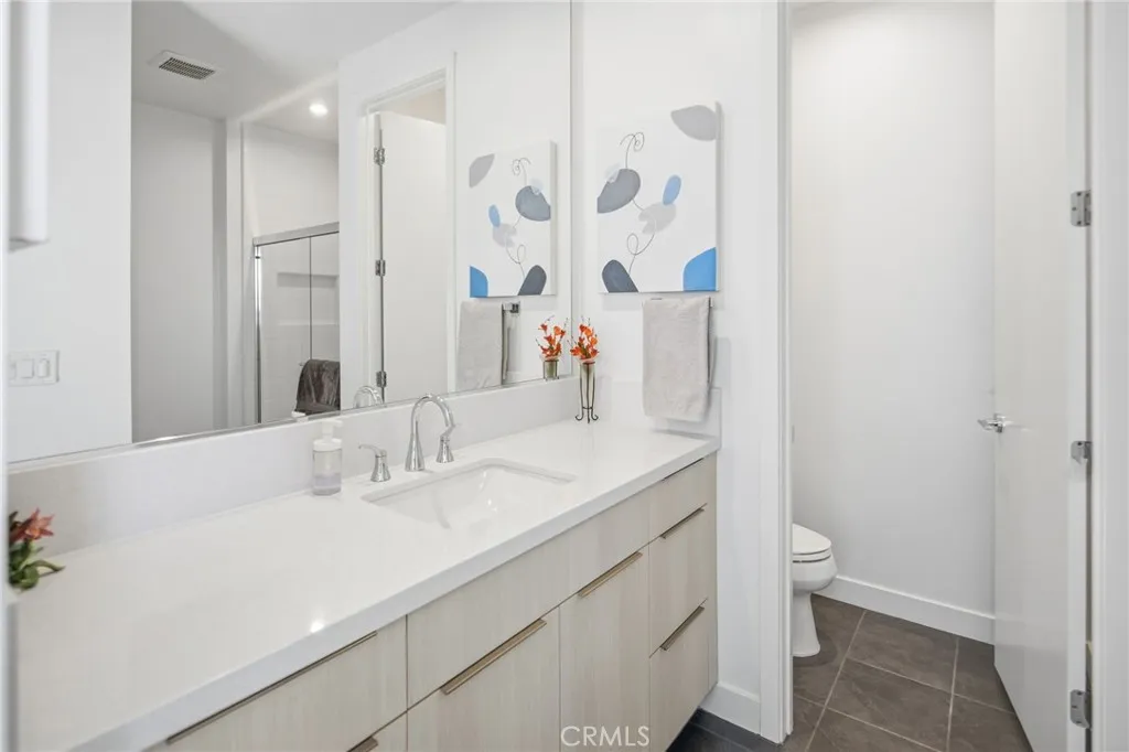 Experience luxury living within the exceptional Civita community by Toll Brothers, perfectly situated near world-class beaches, vibrant downtown destinations, and convenient freeway access. This stunning corner residence sits on a premium lot with unobstructed views and offers 4 bedrooms, 3.5 bathrooms, and 2,301 SF of thoughtfully designed living space, complete with a 2-car garage. Designer-selected finishes elevate nearly every space and are complemented by premium upgrades including KitchenAid stainless steel appliances, a side-by-side washer and dryer with pedestals, tankless water heater, owned solar, a NEMA electric vehicle charging outlet, and enhanced insulation. The first floor features a private bedroom with a full bathroom, ideal for guests or a home office, along with a modern entry hallway and an oversized under-stair storage closet. The second floor showcases an expansive open-concept living area anchored by a chef-inspired kitchen with a large center island wrapped in designer finishes. Highlights include ceiling-height cabinetry, dovetail soft-close drawers, designer hardware, a full island wrap, and striking quartz slab countertops. Exceptional storage is found throughout the home, including pantry and abundant cabinetry. The third floor is dedicated to comfort and functionality, featuring a spacious primary suite with a beautifully appointed bathroom with shower tiled to the ceiling and an extra-large closet. Two additional bedrooms and a shared full bathroom are thoughtfully positioned on the opposite end of the floor, along with a conveniently located l