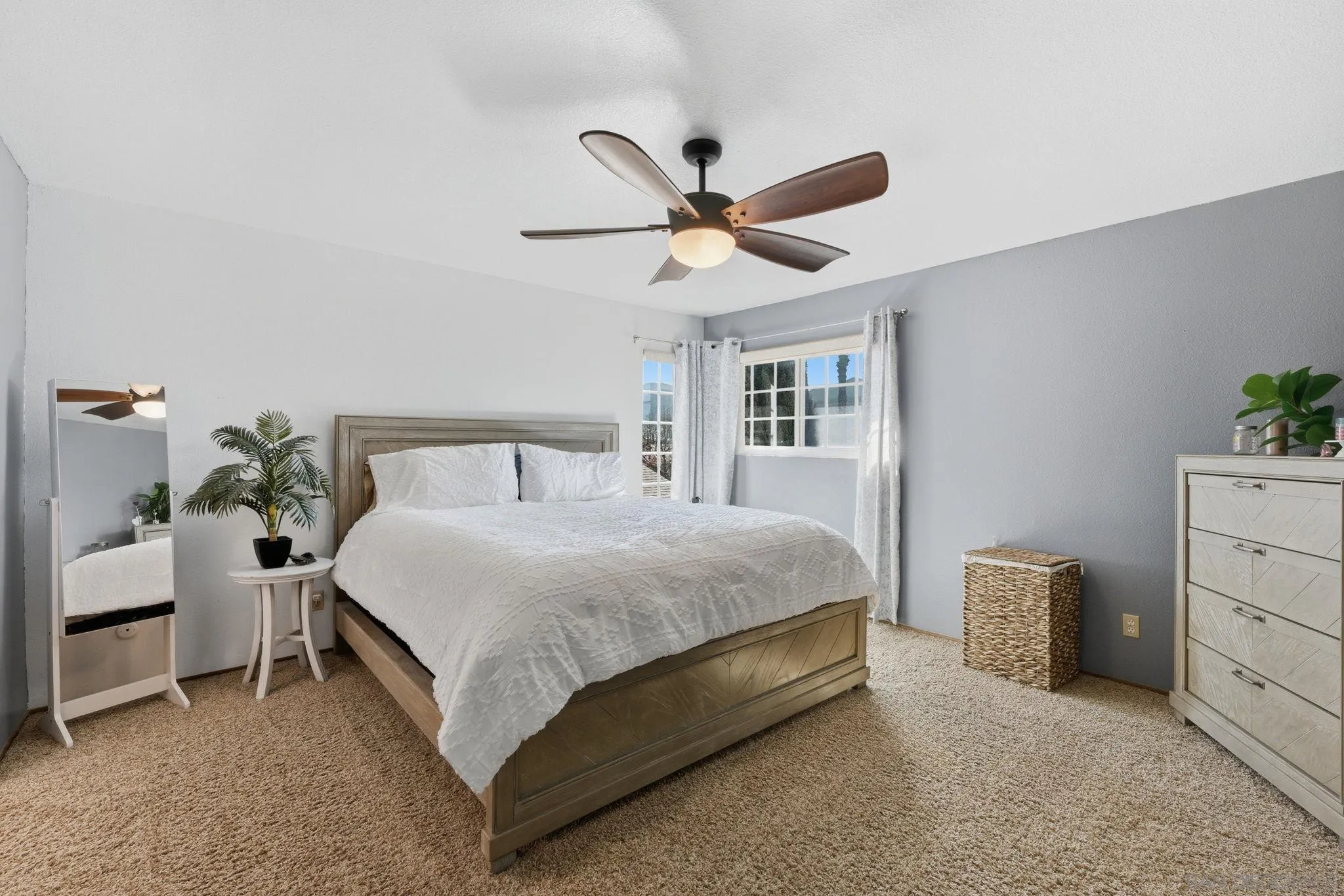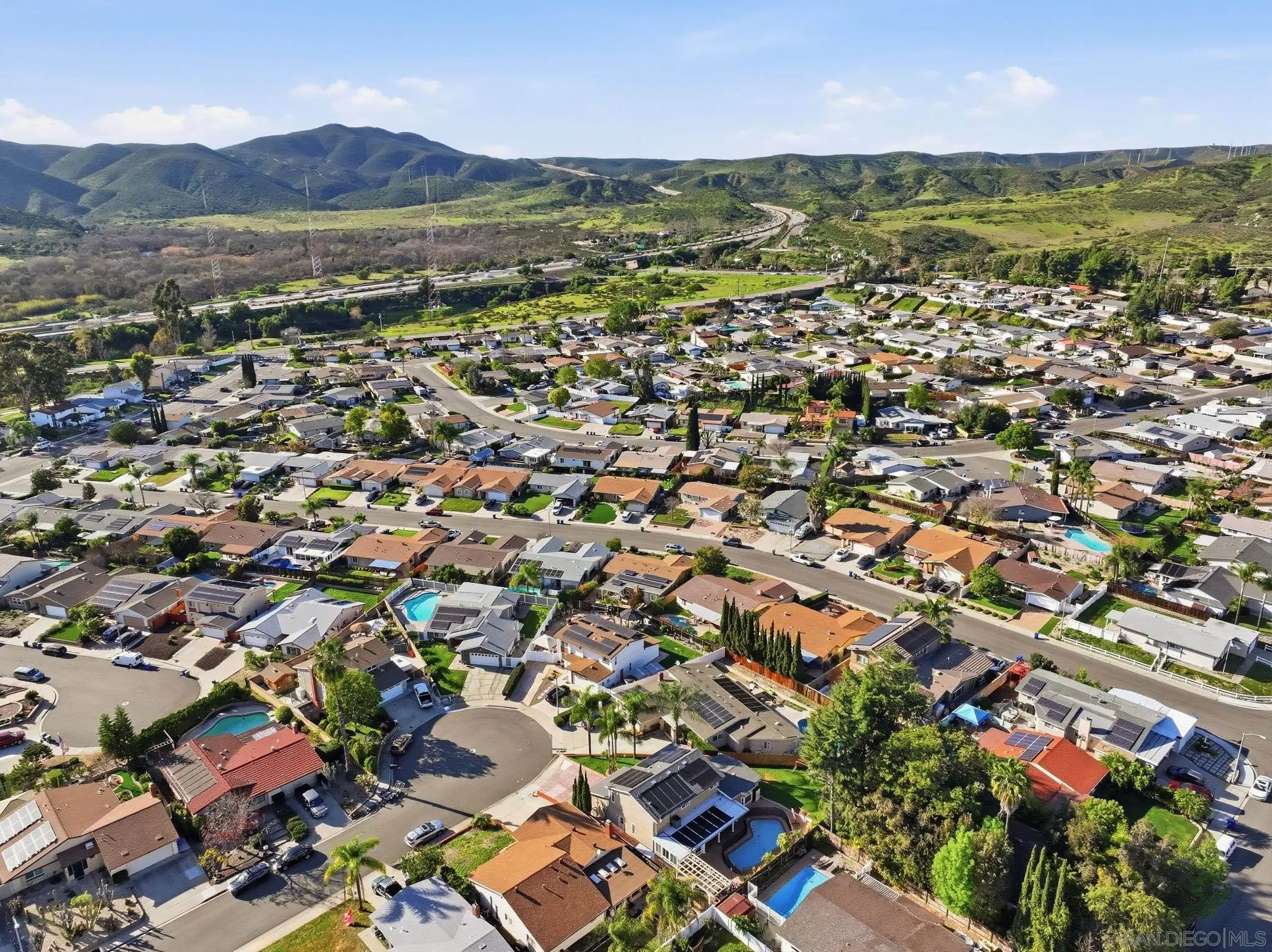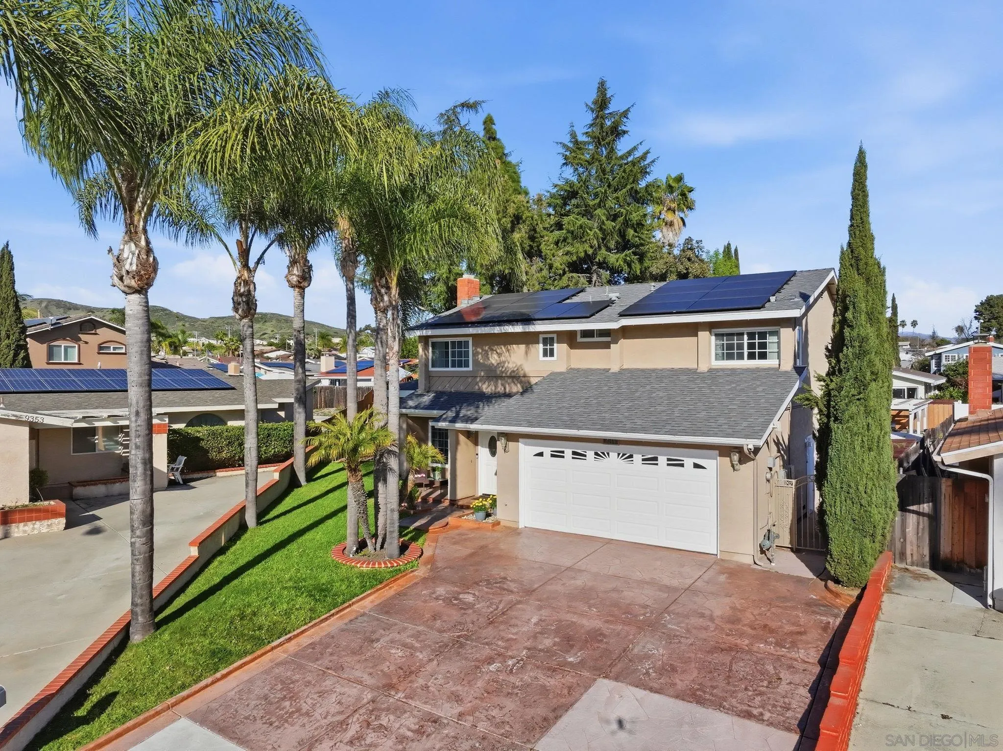 Resort-style living takes center stage in this thoughtfully updated Santee home, where an owned solar system and private pool create a comfortable, energy-conscious lifestyle from day one. Tucked away on a quiet cul-de-sac, this 4-bedroom plus bonus room, 2.5-bath residence offers 2,110 square feet of well-designed living space on a 7,528 square foot lot. Inside, the layout includes well-defined living areas with distinct spaces for living, dining, and gathering. Dual-pane windows and a freshly painted interior enhance natural light and comfort throughout. The updated kitchen serves as a functional hub with granite countertops and stainless steel appliances, connecting easily to the main living spaces for effortless flow. A bonus sunroom provides flexible use as a home office, playroom, or relaxation space, adding valuable versatility. Outside, the entertainer’s backyard is designed for year-round enjoyment with a solar-heated pool, expansive covered patio, outdoor kitchen, grassy area, and play set, offering space to relax or host with ease. Major system updates include owned solar, a new roof, HVAC system, and solar pool water heating installed in 2022, along with a new water heater added in 2024, offering improved efficiency and added peace of mind. Conveniently located close to schools and everyday amenities, this move-in ready home delivers the indoor-outdoor lifestyle Santee is known for.