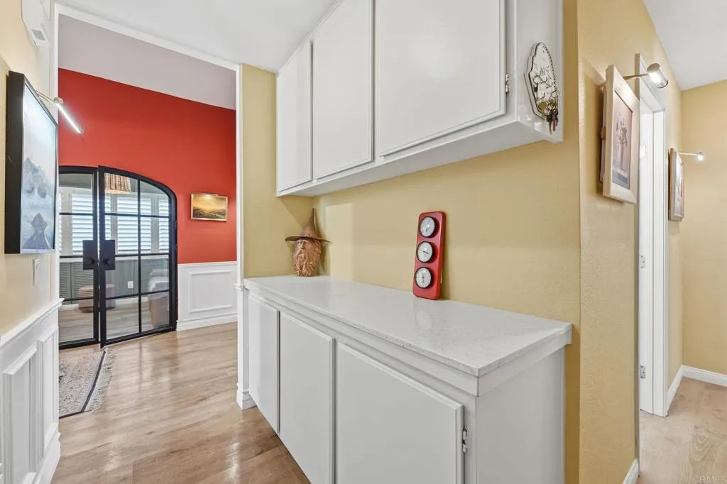 Discover this beautifully reimagined, single-level residence designed with entertaining in mind, located in the highly sought-after Rancho Santa Fe Vista community of Encinitas. The custom kitchen showcases handcrafted solid wood cabinetry, quartzite countertops, and top-tier Thermador and Fisher & Paykel appliances, all seamlessly opening to an upgraded outdoor living and entertaining area. Experience the best of North County coastal living with elevated outlooks, a built-in recessed entertainment feature, private putting green, easy-care landscaping, and newly refreshed exterior paint. Inside, the home offers a dedicated office, brand-new Milgard windows throughout, statement custom iron entry doors, and a thoughtfully designed primary suite storage system by California Closets. Ideally positioned within walking distance to Olivenhain Pioneer Elementary, Diegueno Middle School, and Sun Vista Park, and just minutes from the beach and the vibrant shops, dining, and lifestyle along Highway 101. Move-in ready and meticulously upgraded a standout opportunity ready to be enjoyed.