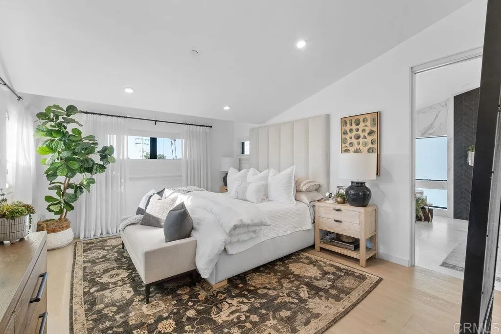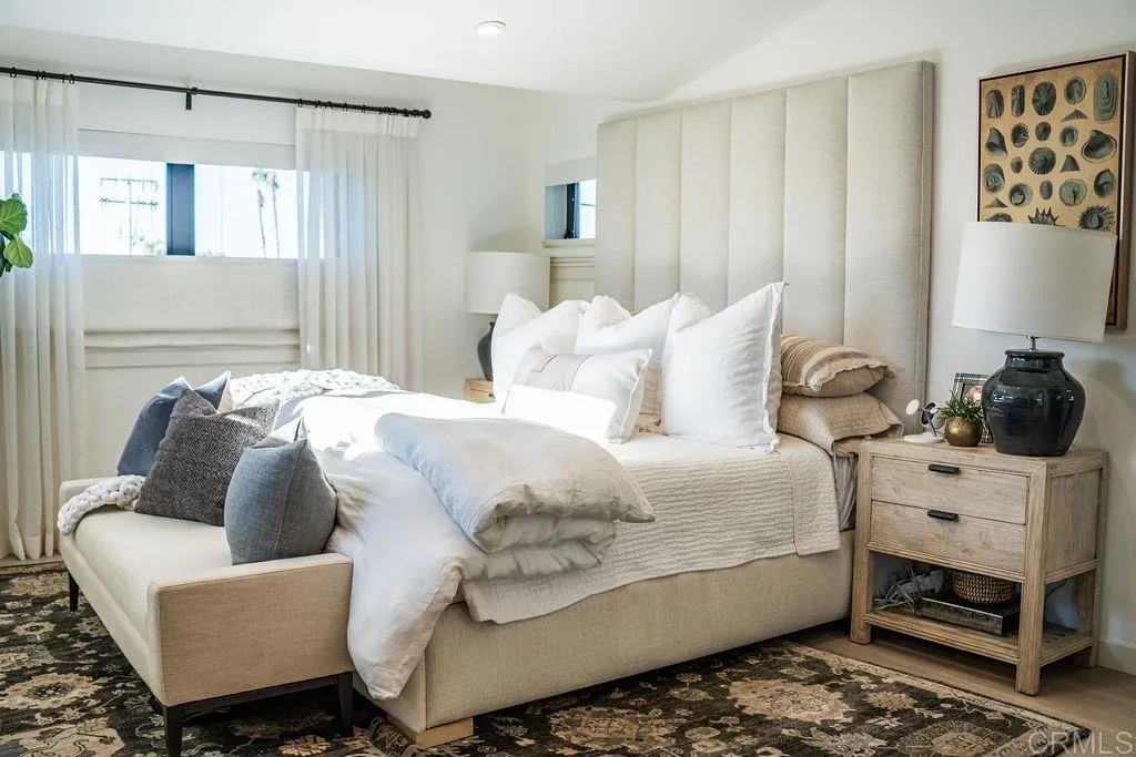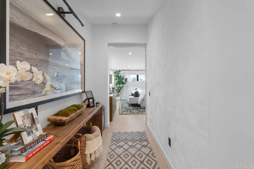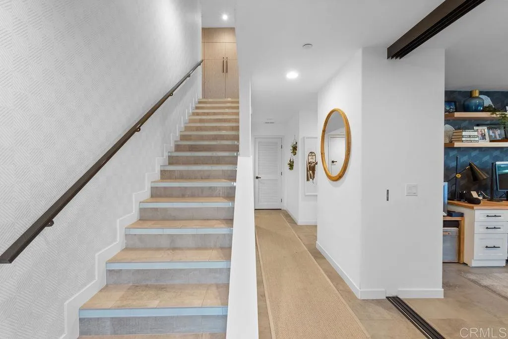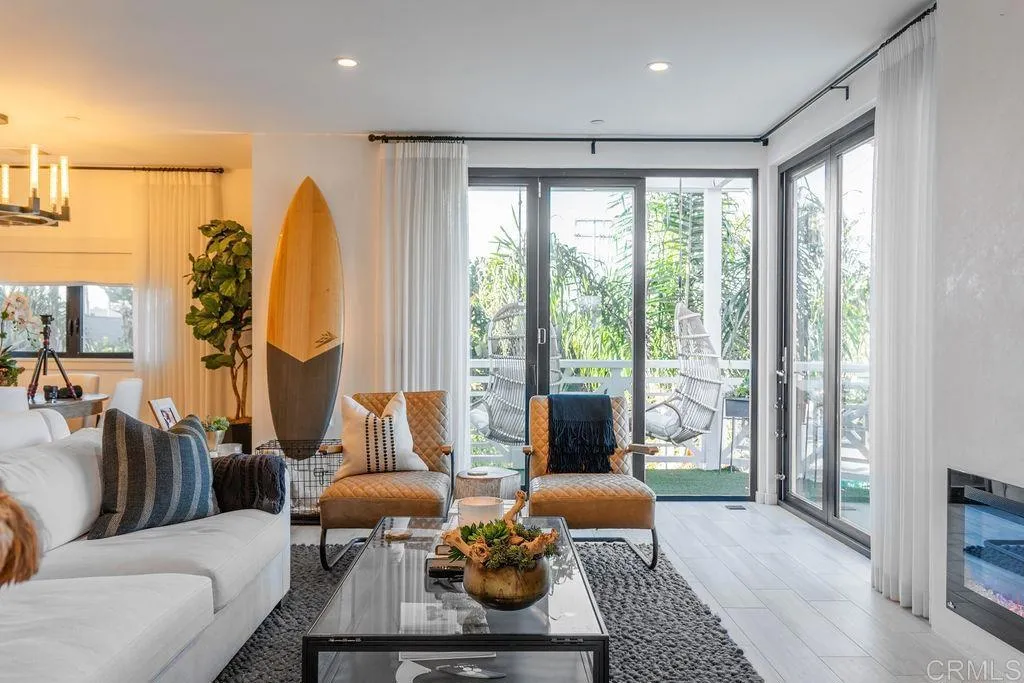 Experience elevated coastal living in this designer-curated luxury townhome–located just one block from the pristine beaches of Carlsbad and offered fully furnished and fully equipped. Built in 2017 and extensively remodeled in 2021 with premium materials, custom upgrades, and meticulous attention to detail, this lightly lived-in residence delivers an effortless, move-in-ready lifestyle that appeals to the discerning buyer who values both style and convenience. Perfectly positioned to capture ocean breezes without the heat of direct afternoon sun, the home offers a rare combination of comfort, privacy, and modern sophistication in one of North County’s most desirable coastal corridors. The entry level features direct access from the attached two-car garage, along with two spacious bedrooms and a full bath. On the main level, soaring ceilings and picture windows bathe the space in natural light. A sleek fireplace, Cantina doors for seamless indoor-outdoor flow, recessed lighting, and a glass-accented staircase add architectural drama.