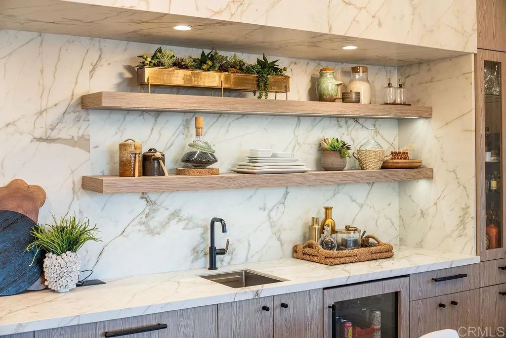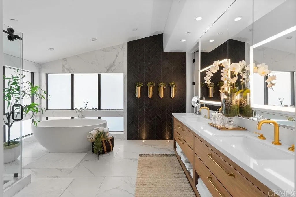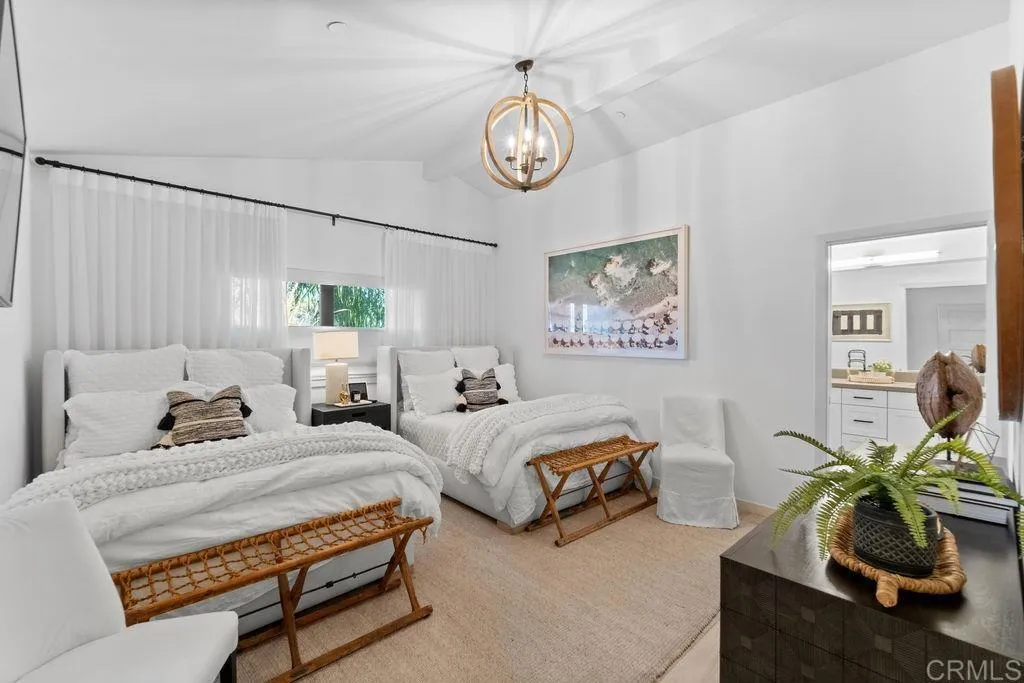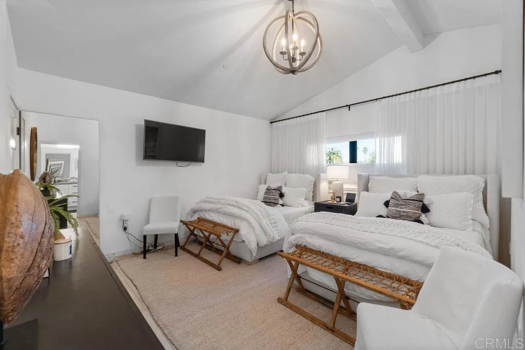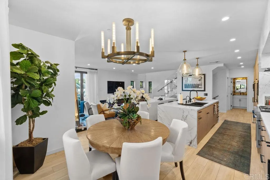 Experience elevated coastal living in this designer-curated luxury townhome–located just one block from the pristine beaches of Carlsbad and offered fully furnished and fully equipped. Built in 2017 and extensively remodeled in 2021 with premium materials, custom upgrades, and meticulous attention to detail, this lightly lived-in residence delivers an effortless, move-in-ready lifestyle that appeals to the discerning buyer who values both style and convenience. Perfectly positioned to capture ocean breezes without the heat of direct afternoon sun, the home offers a rare combination of comfort, privacy, and modern sophistication in one of North County’s most desirable coastal corridors. The entry level features direct access from the attached two-car garage, along with two spacious bedrooms and a full bath. On the main level, soaring ceilings and picture windows bathe the space in natural light. A sleek fireplace, Cantina doors for seamless indoor-outdoor flow, recessed lighting, and a glass-accented staircase add architectural drama.