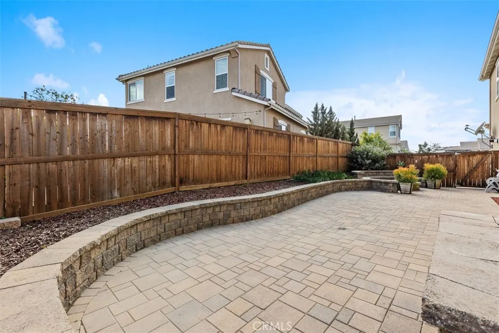 HERE IT IS! This beautiful Escondido home offers excellent curb appeal with well-maintained landscaping and was built in 2014. Featuring 4 bedrooms and 3 full bathrooms, the home provides approximately 2,309 sq. ft. of living space on a 6,518 sq. ft. lot. Upon entry, youre welcomed into a spacious living room with a gas fireplace, rich laminate flooring, and window shutters. The living room, dining area, and kitchen connect seamlessly to create an open-concept great room ideal for both everyday living and entertaining. The kitchen is thoughtfully designed with granite countertops and backsplash, stainless steel appliances, a dual oven, and a gas five-burner cooktop. The living room offers direct access to the expansive backyard through a glass sliding door. The main level is complete with a full bathroom, a versatile flex space perfect for a home office, formal dining room, or potential guest bedroom, and a separate laundry area. Upstairs, the spacious primary suite features a large walk-in closet and an ensuite bathroom with dual sinks, a makeup vanity, ample cabinetry, a soaking tub, and a separate glass-enclosed shower. Three additional bedrooms and a third full bathroom are also located upstairs, along with a landing area featuring a built-in workstation and generous storage. The backyard is ideal for outdoor entertaining with professionally installed hardscaping and a gas fire pit. The 2-car garage includes custom built-in cabinetry for ample storage, and the extended driveway provides abundant parking. Enjoy all this home has to offerand morewith NO HOA and NO Mello-R