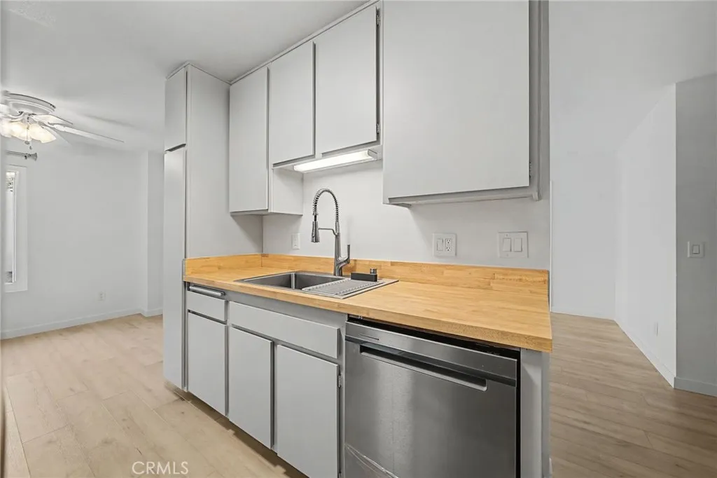 Rarely available corner unit with an expansive private wrap around yard, offering one of the largest outdoor spaces in the community. This recently renovated ground floor residence has been thoughtfully upgraded throughout and is move in ready. The interior features two spacious primary suites, each with its own updated bathroom. The remodeled kitchen showcases new stainless steel appliances, butcher block countertops, and freshly finished cabinetry. Renovated bathrooms feature updated tile work, fixtures, and lighting. Luxury vinyl plank flooring runs throughout the home, complemented by dual pane vinyl windows and a new sliding patio door that enhance natural light and energy efficiency. The oversized wrap around yard is a standout feature, offering exceptional indoor outdoor living with ample space for entertaining, gardening, pets, or an extended patio area. The tranquil courtyard in front of the unit is well landscaped and benefits from consistent breezes. Additional highlights include ceiling fans throughout, ground level access, and two reserved parking spaces located directly in front of the building. Centrally located near Mesa College, University of San Diego, Mission Valley, major freeways, shopping, and dining in Convoy. A rare opportunity to own a turnkey two bedroom, two bathroom home with substantial private outdoor space in Linda Vista.